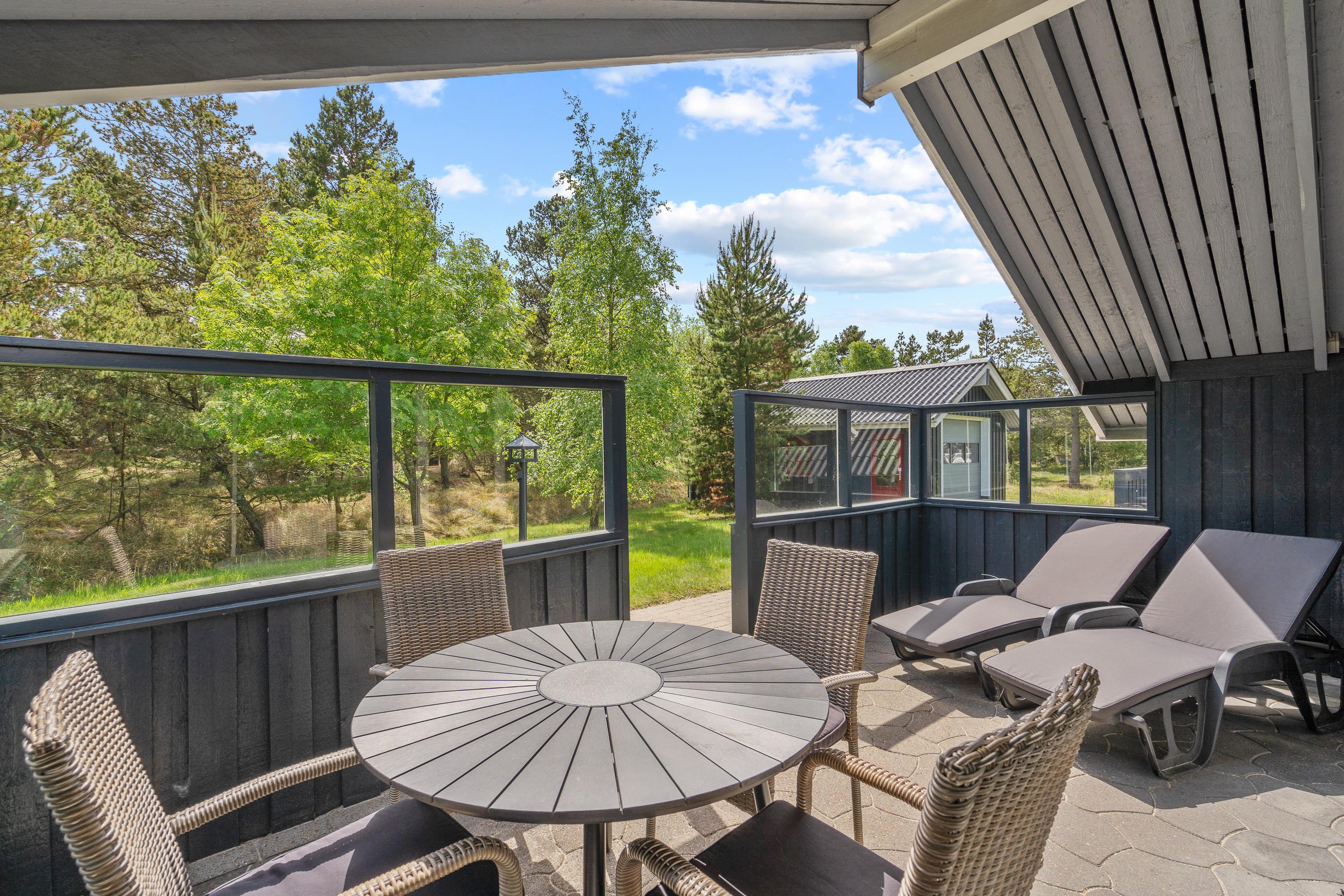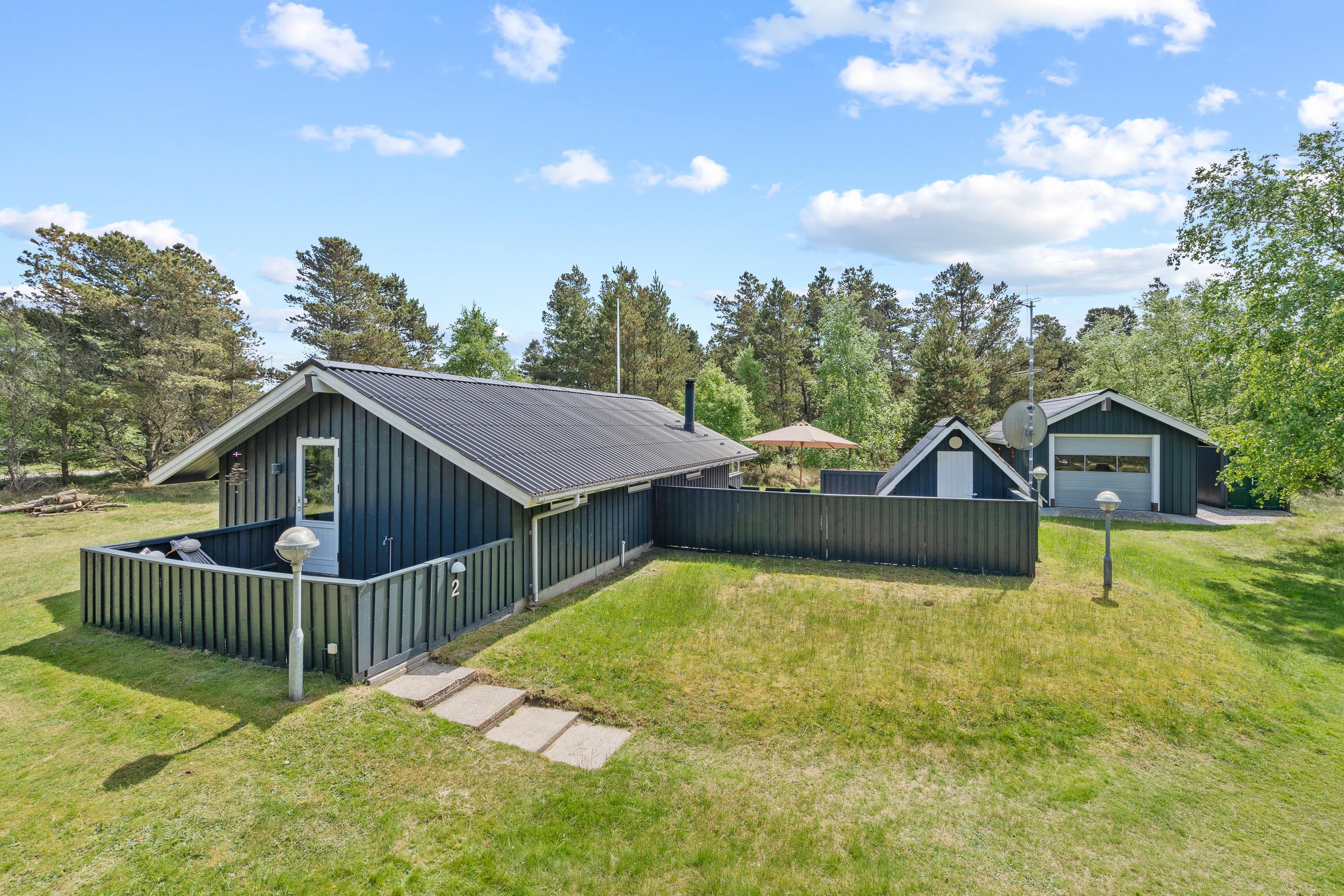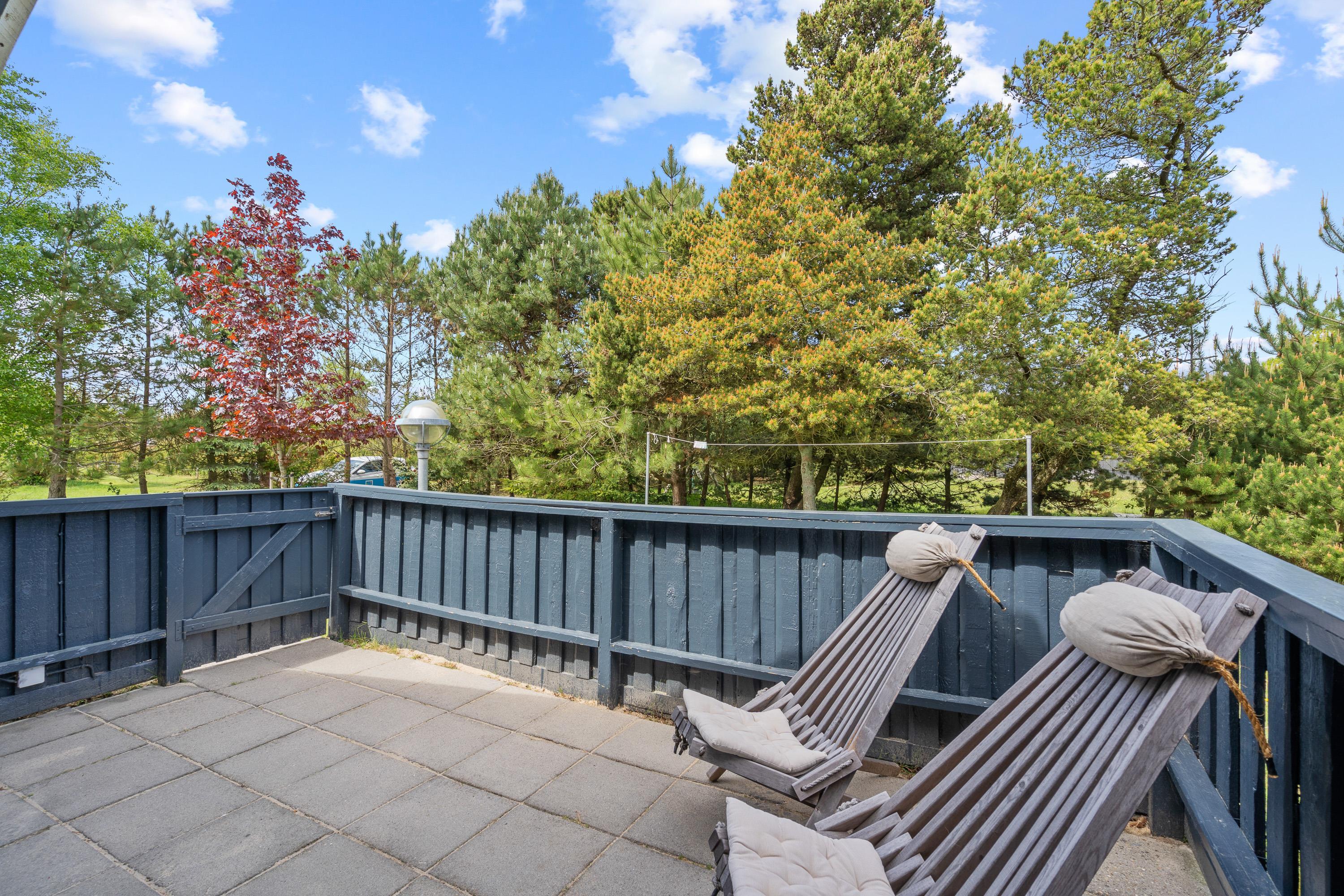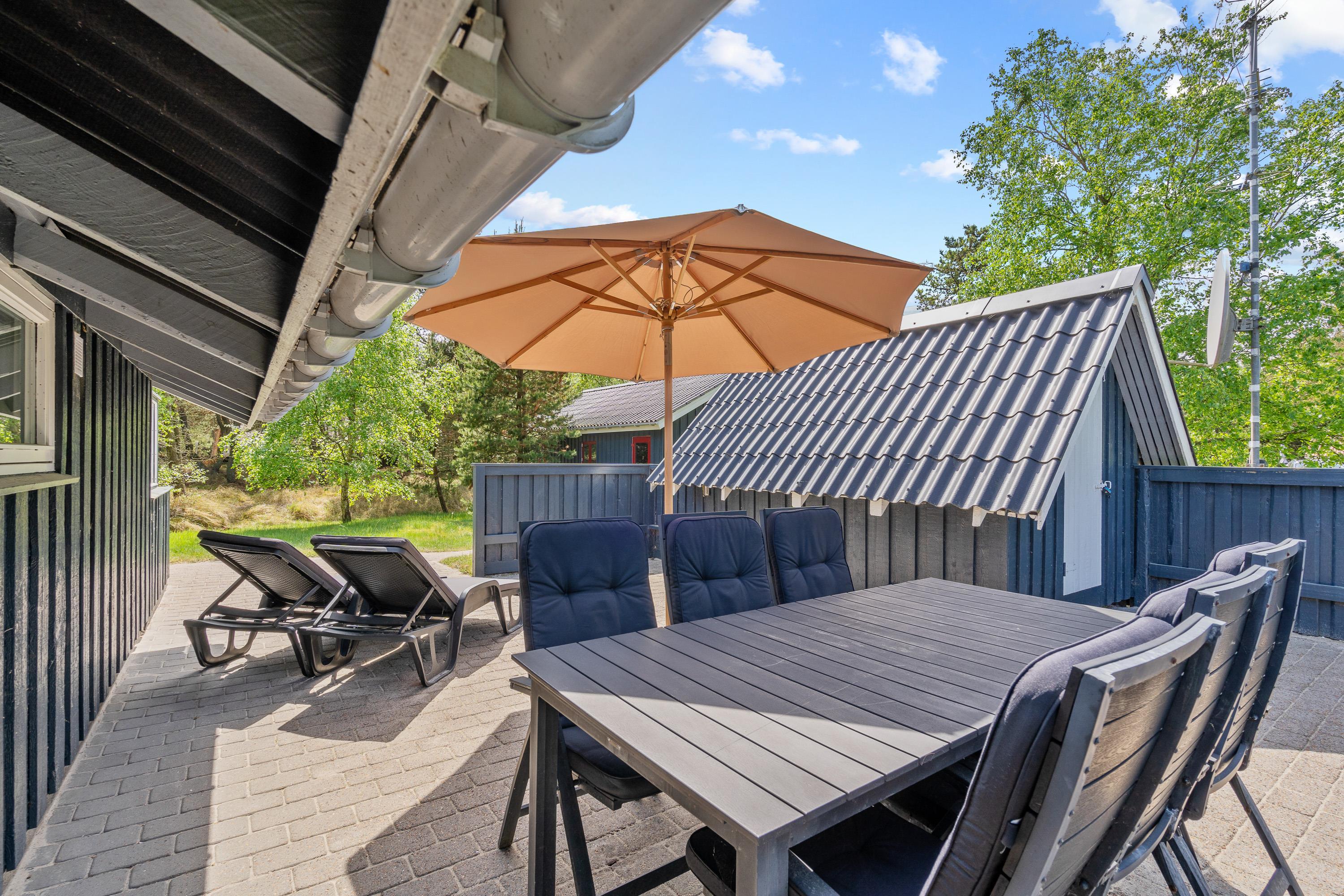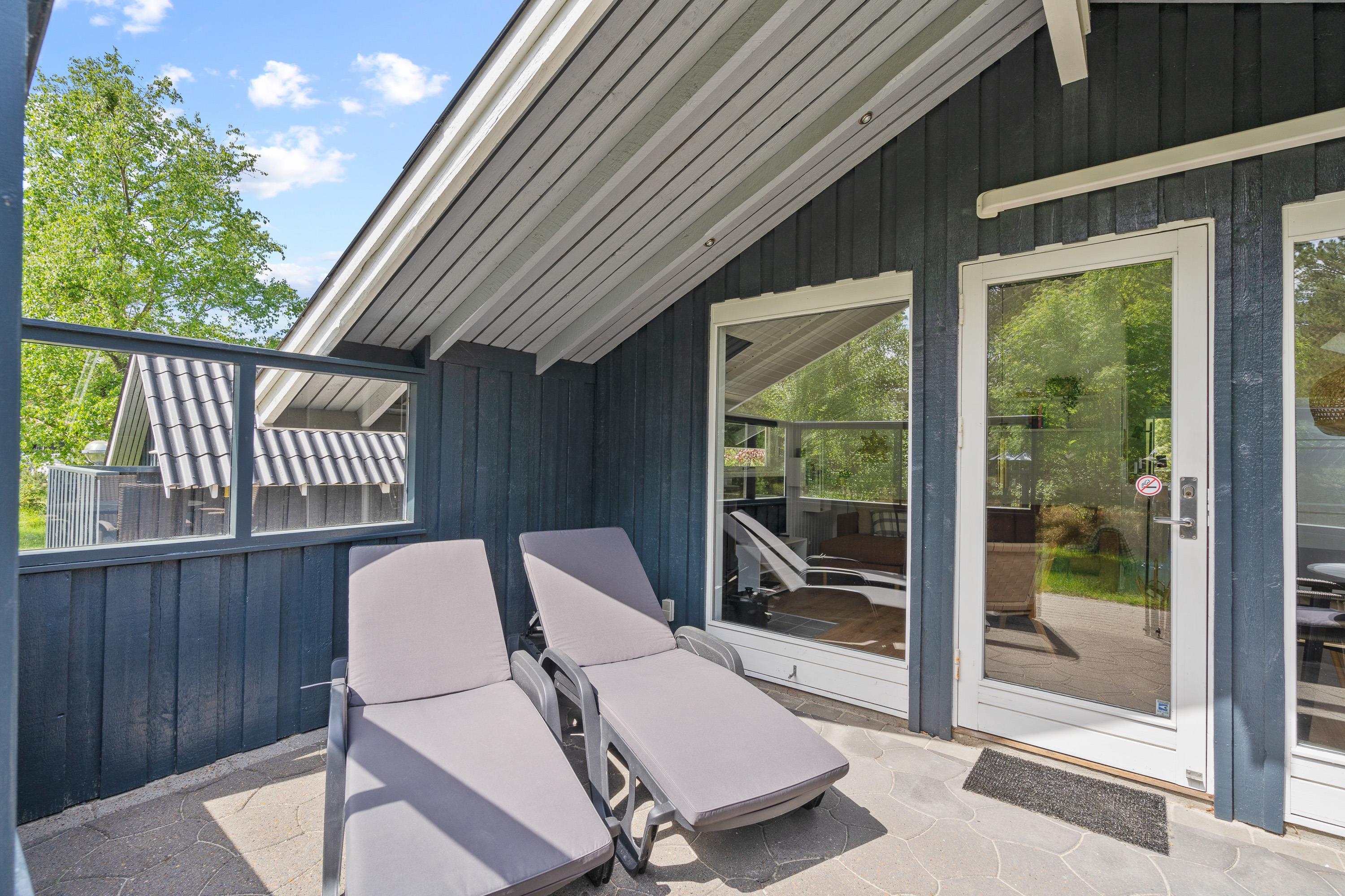Fra sommerhusets stue kan I træde ud på den skønne terrasse. Det oplagte sted at tilbringe feriens solrige dage. Her kan I sætte jer godt til rette i havemøbler og liggestole med en god bog, mens I slapper af i solens stråler med lyden af fuglefløjt og vindens susen i træerne i baggrunden. En del af terrassen er overdækket, så hvis I skulle trænge til en stund i skyggen, har I også mulighed for det.