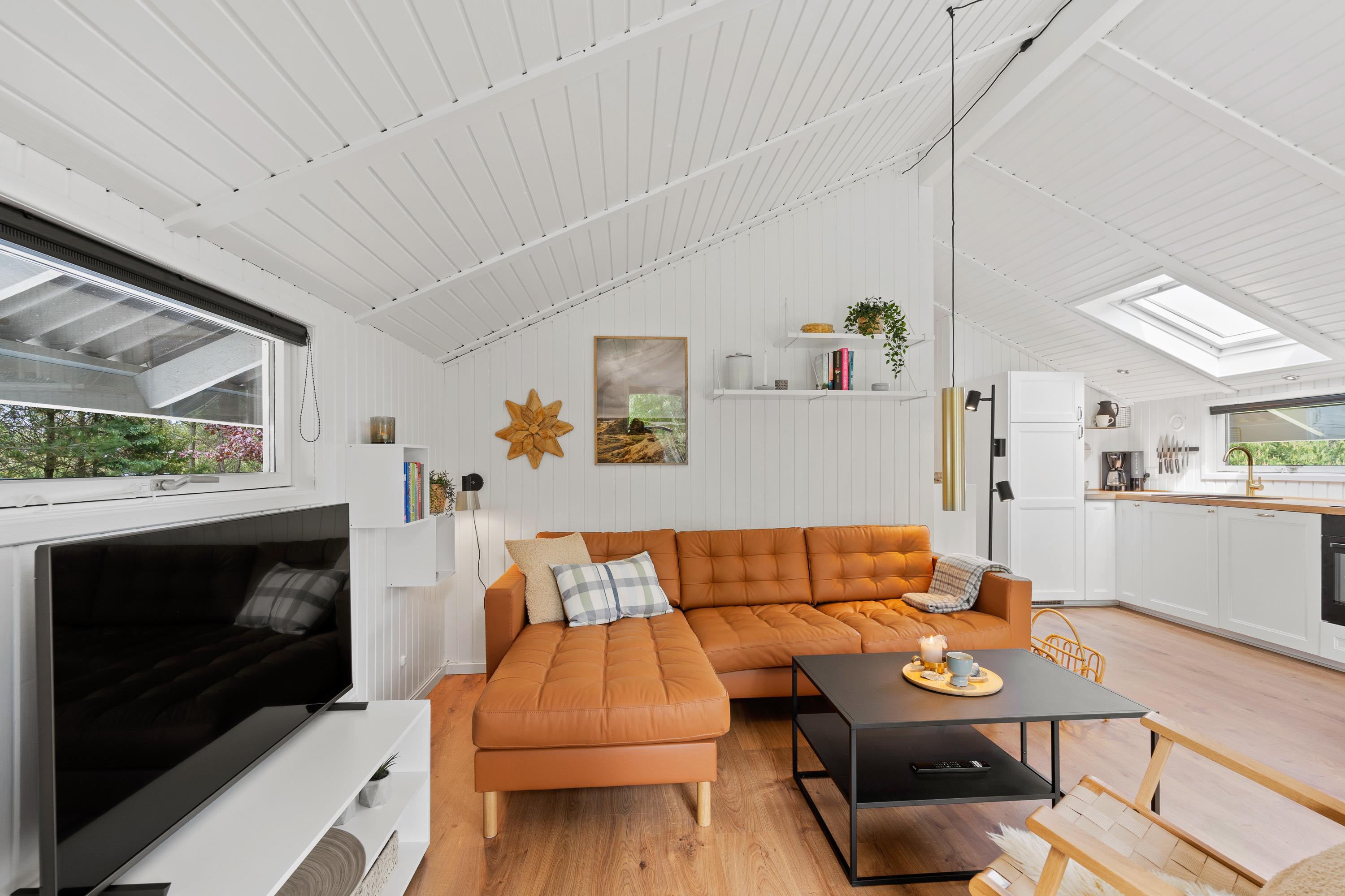 Til de mere afslappende og hyggelige stunder kan I finde jer til rette i sommerhusets alrum, der forener køkken, stue og spiseplads. Her kan I både nyde hyggelige stunder med madlavning, spil og film – brændeovnen sørger med sine knitrende flammer for, at feriestemningen er i top.