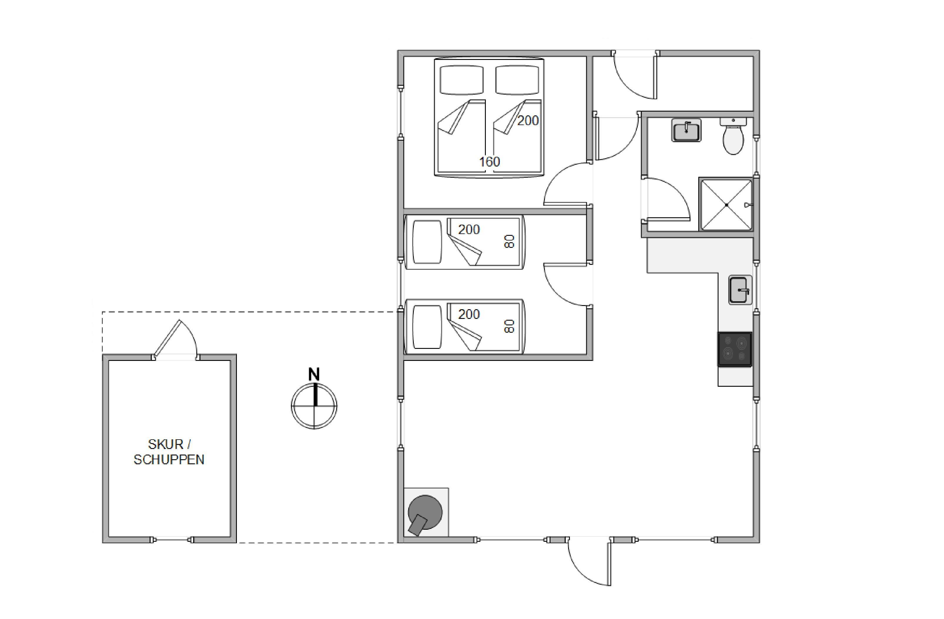 I feriehuset har I 2 gode soveværelser, I kan søge mod, når det er tid til at gå til køjs og samle ny energi til de kommende feriedage. Det ene soveværelse er indrettet med en dobbeltseng, mens det andet soveværelse er indrettet med 2 enkeltsenge. Desuden har I 1 badeværelse med gulvvarme i feriehuset.