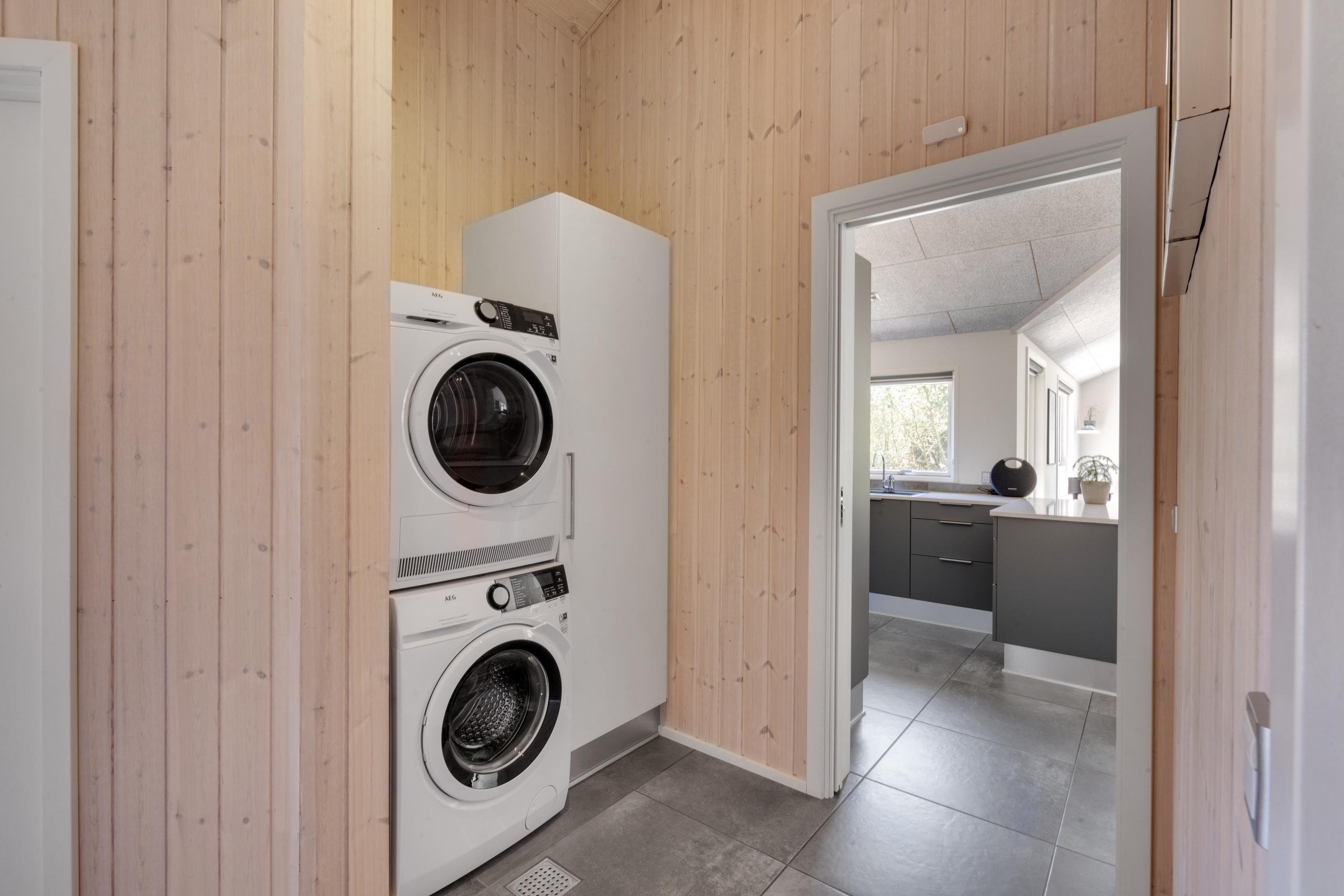 Feriehuset råder også over de daglige hvidevarefaciliteter som opvaskemaskine, vaskemaskine og tørretumbler – og med gennemgående gulvvarme i hele sommerhuset har I altid lune fødder.
