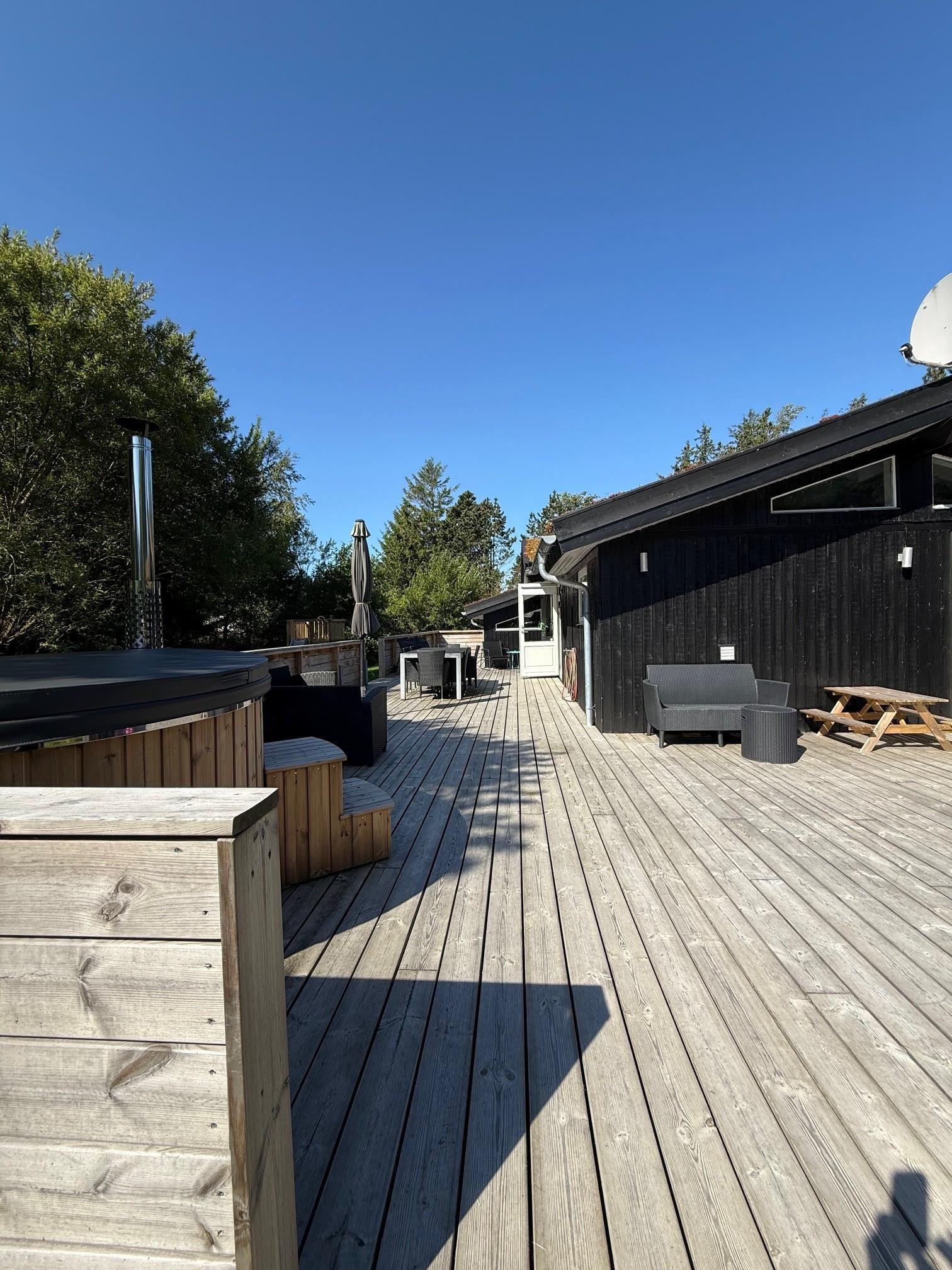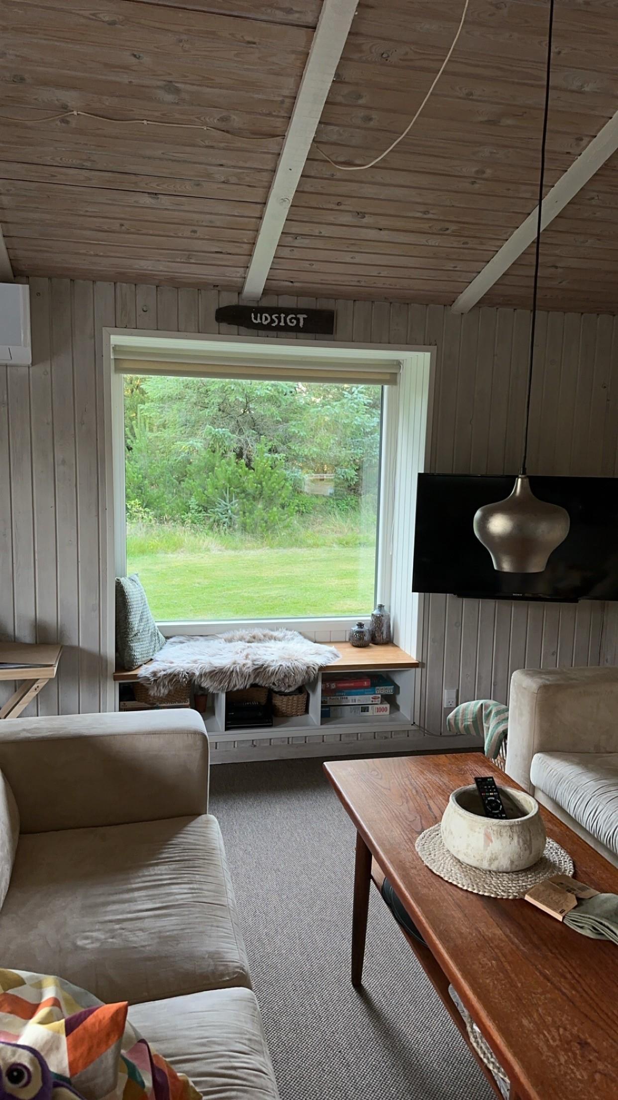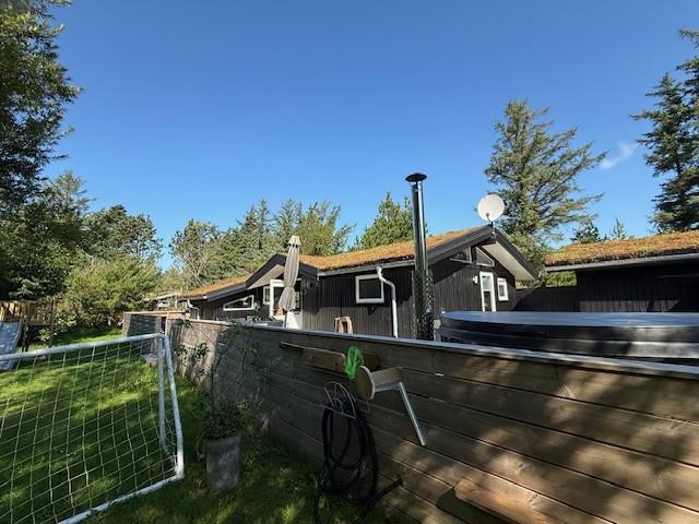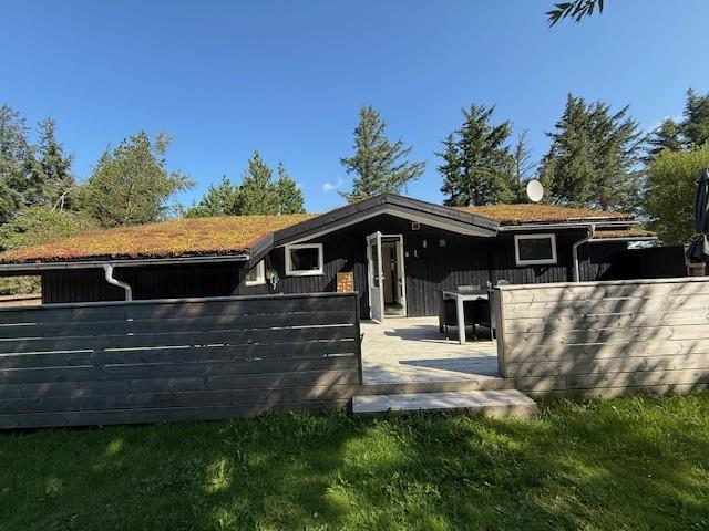 Godt træhus med græstag beliggende lige ved siden af det populære mini-golf anlæg. Huset har faste tæpper i alle opholdsrum. Panoramavindue i stuen med udsigt til smuk natur hvor hjortevildtet kigger forbi. Ligger på naturgrund med græs og stor delvist overdækket træterrasse med gode muligheder for sol, læ og skygge. I den kolde tid kan man nyde en tur i vildmarksbadet og koble af med et glas bobler mens man kigger på stjerner. 1 dobbeltseng. 2 enkeltsenge. Alkove m/ 1 dobbeltseng. Byggeår 1987, træhus, Overdækket terrasse, barnestol, barneseng. Mikroovn, opvaskemaskine. Vaskemaskine, tørretumbler, sauna. DVD-afspiller, farve-TV og parabol,dansk tv kun over cromecast, stereoanlæg, brændeovn, CD-afspiller. Naturgrund med træer.