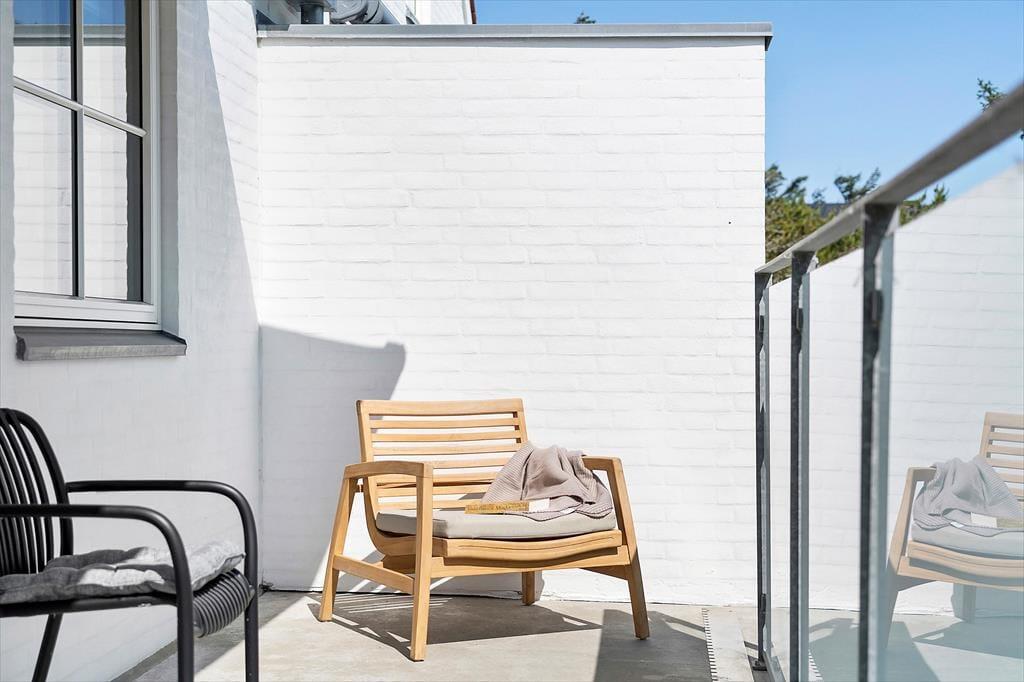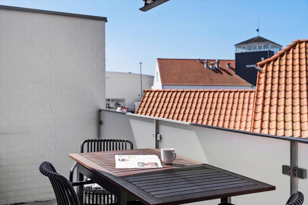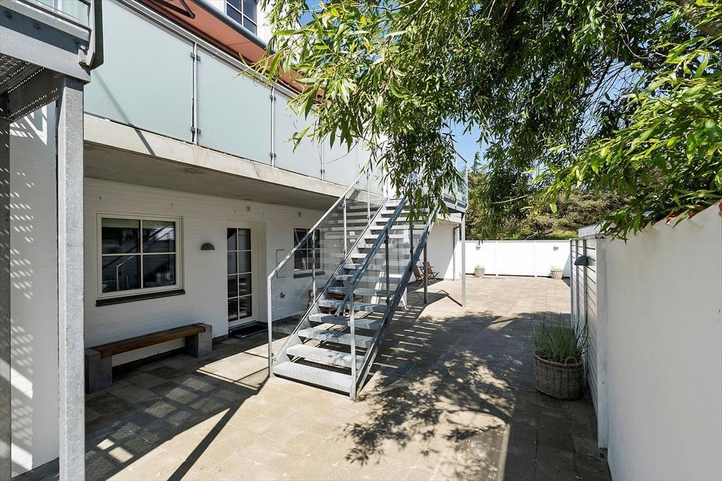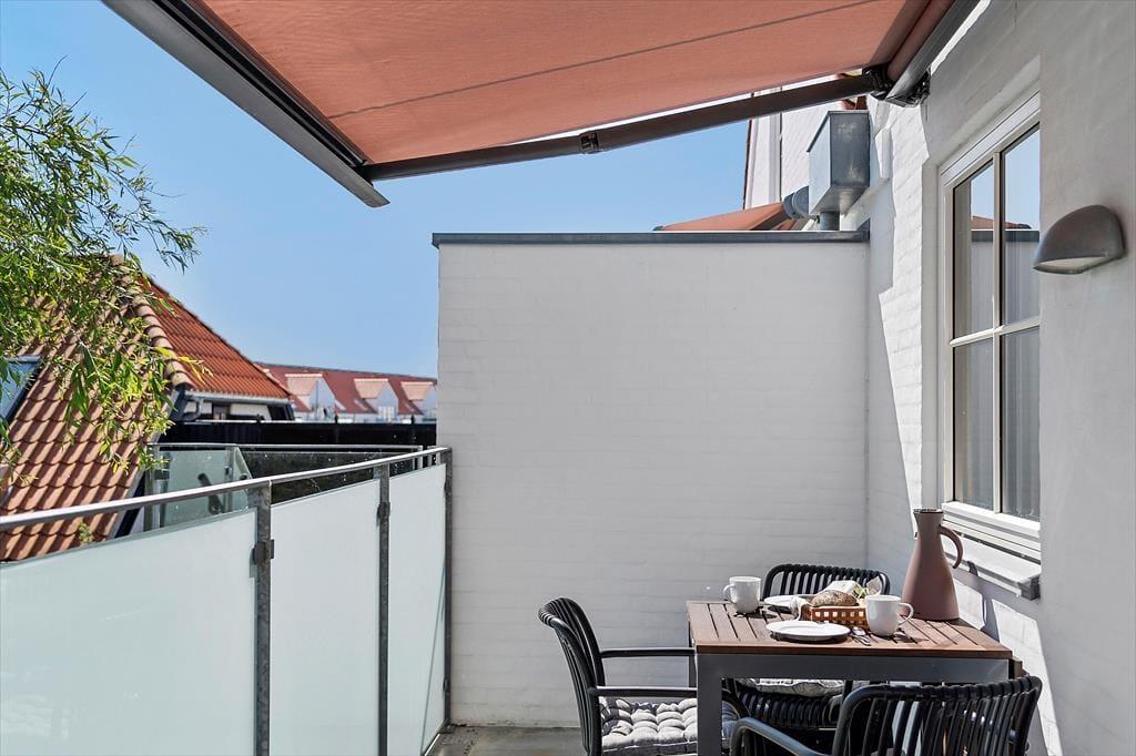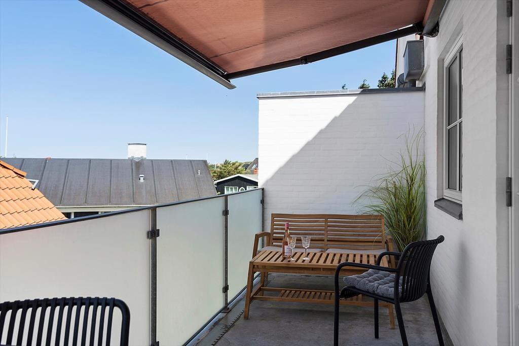 Fra stuen har du direkte adgang til en hyggelig altan, hvor du kan nyde morgenkaffen med udsigt til den summende ferieby nedenfor. Altanen fungerer som en skøn forlængelse af opholdsrummet, og her kan du sidde uforstyrret og følge med i det lokale liv – eller bare læne dig tilbage med en god bog og nyde stilheden. Og skulle du få lyst til at mærke sandet mellem tæerne eller tage en dukkert i Vesterhavet, er du blot få minutters gang fra stranden. Takket være lejlighedens placering behøver du ikke at tænke på bilen – alt, hvad du har brug for, ligger i gåafstand.