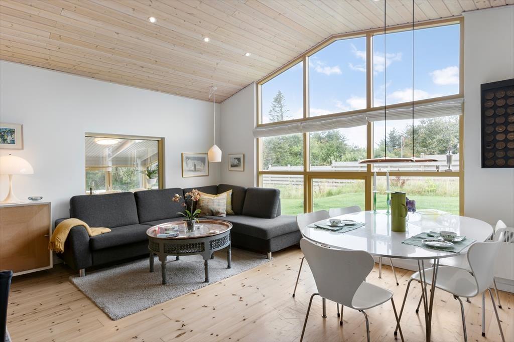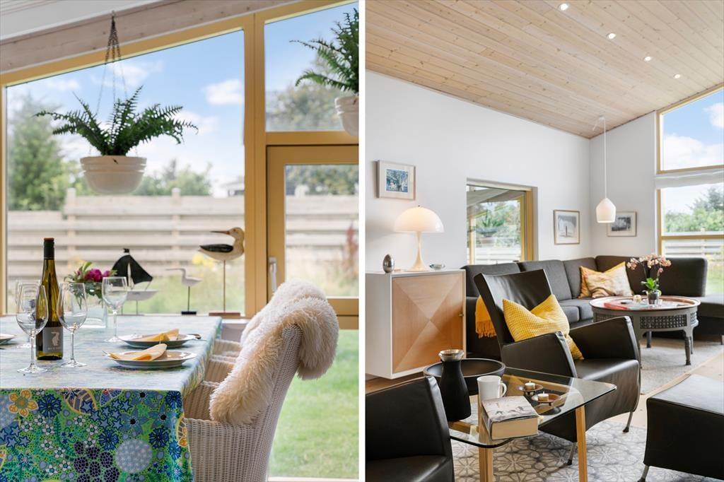 Sommerhuset er dejligt rummeligt med sine 91 m2, og så får I ovenikøbet 55 m2 ekstra at brede jer på i det tilhørende anneks. Der er badeværelse i begge bygninger, og i alt er der tre soveværelser, hvoraf to er med dobbeltseng og det tredje med to enkeltsenge. Alle rum har en skøn og hjemlig atmosfære, for vi er langt fra de standardiserede typehuse med en upersonlig indretning – men det bedste er nu næsten stuen, der byder på en hyggeplads med lænestole nær brændeovnen samt både sofa og spisebord nær det store, vestvendte vinduesparti. Et godt køkken er integreret med stuen, og via en dør har I adgang til en skøn havestue.