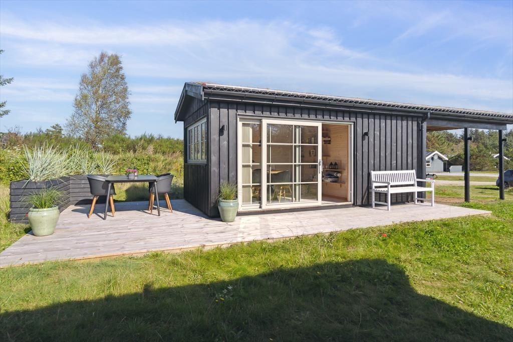 Berberisvej ender blindt lige ved sommerhuset, og mod syd breder et åbent areal sig, så omgivelserne er både rolige og naturskønne. Hvis I er til dasedage på terrassen eller lange gåture i det smukke, nordjyske landskab, har I kig på det helt rette hus – og den attraktive beliggenhed gør det også nemt at få en daglig badetur i Vesterhavet i løbet af ferien. Er I til mavekildrende forlystelser og badeland, ligger sommerhuset tæt på Fårup Sommerland, og lidt sydpå ligger både Hune og Blokhus by, hvis I er i humør til et besøg i Anne Justs Have, en skovtur i klitplantagen eller en stor isvaffel på torvet.