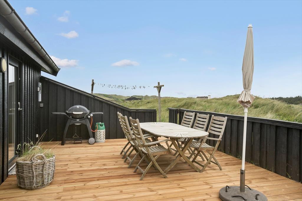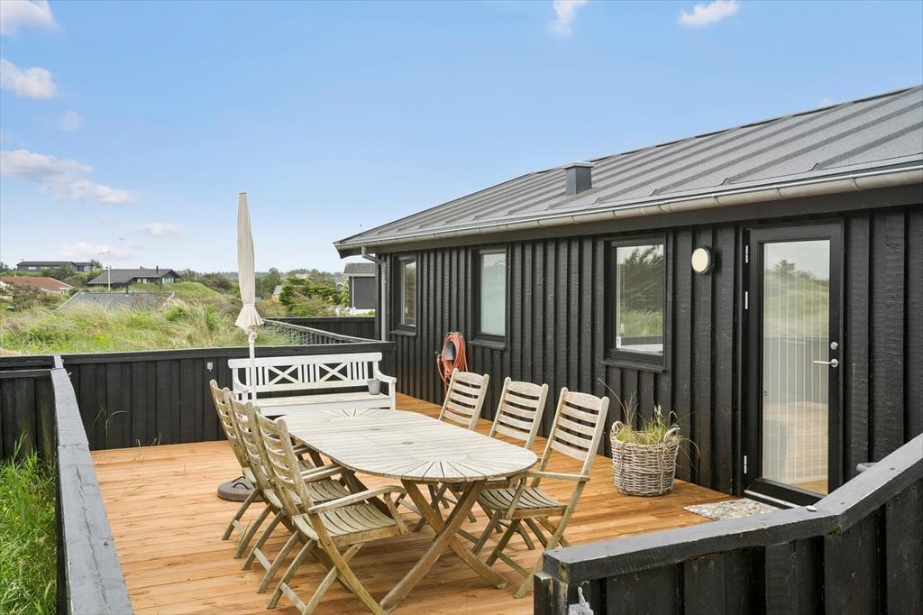 Sommerhuset ligger på en stor naturgrund for enden af Klitvejen som går fra Blokhus centrum og ud i den eksklusive del af sommerhusområdet.Her er højt til himlen og kort afstand til det skønne Vesterhav.Man er dejlig ugenert og efter en tur i de blå bølger, kan man nemt og hurtig blive skyllet under den udendørs bruser.Huset omkranses af en stor terrasse, med fine læforhold.