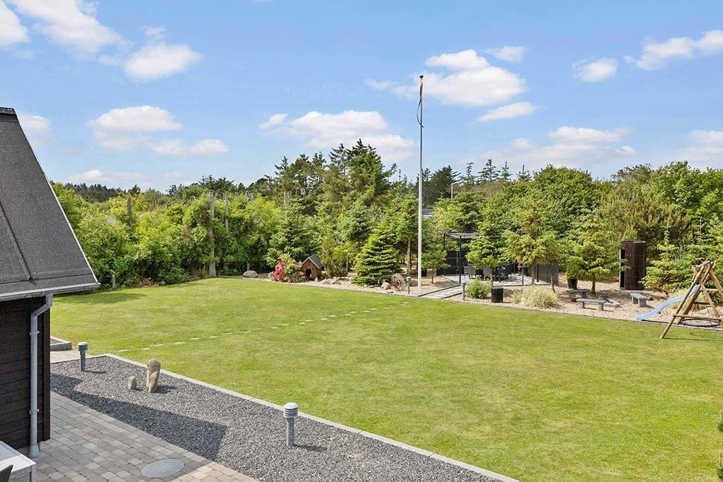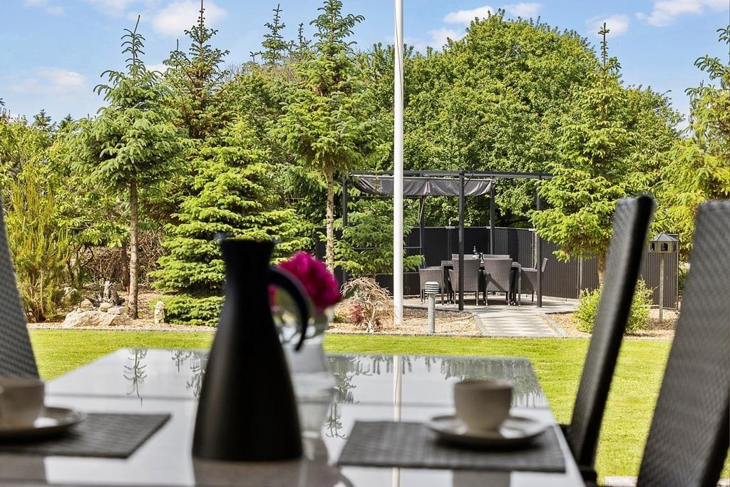 Huset ligger på en 1.521 m2 stor grund med en flot anlagt have, som med garanti vil begejstre både store og små. Græsplænen inviterer til leg og boldspil, og der er desuden et legestativ i haven. Er man ikke til for meget fysisk aktivitet, kan man nyde de fredfyldte omgivelser i ro og mag i en liggestol – der ergode terrasser både ved huset og i bunden af haven, hvor der altid er vindstille. Den ene terrasse er overdækket, så her kan I trække ind i skyggen, når solen bager, eller hygge jer i tørvejr, hvis det skulle dryppe lidt fra oven.