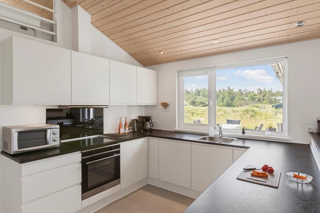 Når du træder indenfor i dette dejlige sommerhus, bliver du straks mødt af en varm og indbydende atmosfære. De store vinduespartier lukker sollyset ind og giver en følelse af at være tæt på naturen, selv når du opholder dig inde. Indretningen er moderne og funktionel, med et åbent køkken, der glider harmonisk sammen med stue og spiseområde. Her er der masser af plads til hyggelige middage og afslappende stunder, hvor man kan synke ned i en god bog. Huset har flere soveværelser, der er indrettet i samme lyse stil og giver gode muligheder for både børn og voksne at finde sig til rette efter en dag fyldt med aktiviteter.