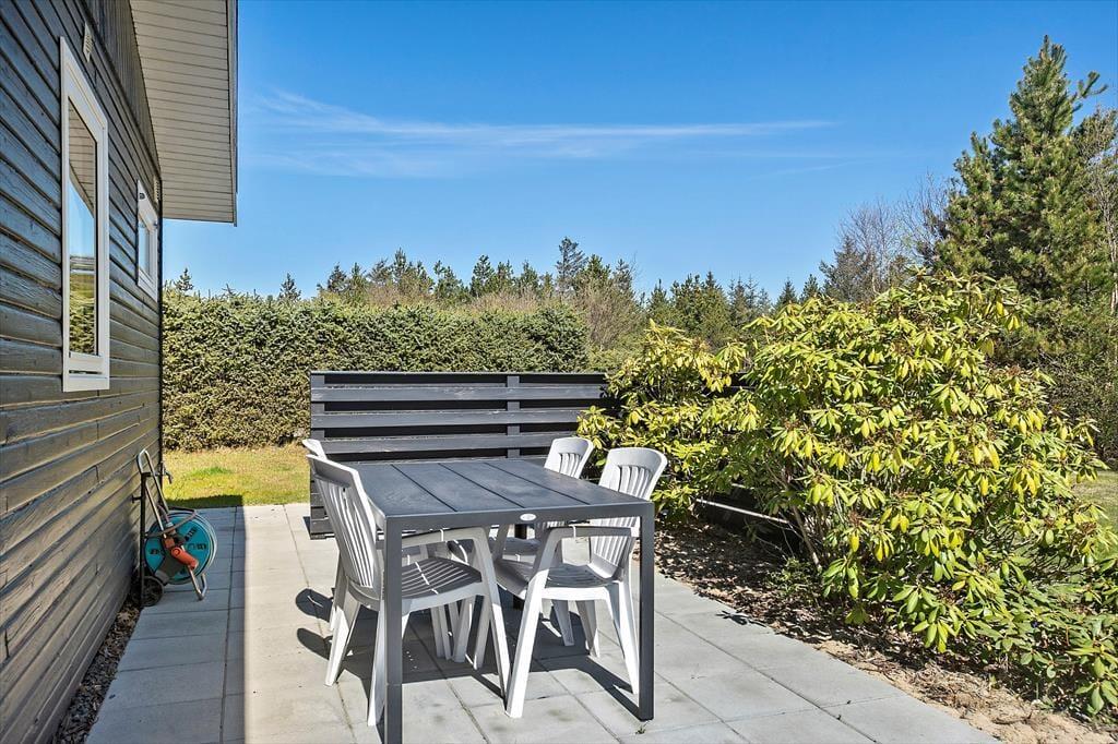 I forlængelse af sommerhuset ligger en overdækket terrasse, og der er også åbne terrassearealer mod både syd og øst, så I kan sætte jer lige der, hvor I har lyst. Havens hæk og plankeværk skærmer terrassearealerne og græsplænen af, og derfor er det nemt at finde en ugeneret solkrog med læ, når I trænger til en rolig stund i en liggestol.