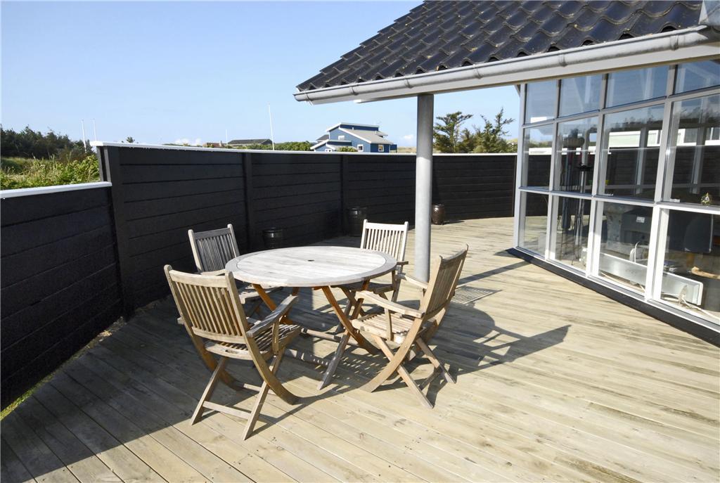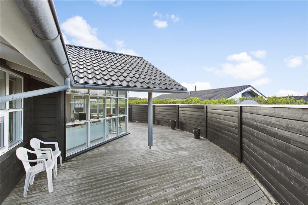 Den store, ugenerede terrasse er sommerhusets helt store trumfkort. Her kan du nyde solens varme, lytte til fuglesangen og slappe af med en god bog. Den er ideelt orienteret, så du kan finde sol hele dagen og skygge, når du trænger til det. Når aftenen nærmer sig, kan du tænde grillen og nyde en lækker middag under åben himmel. Hele udendørsområdet er et fredfyldt fristed, hvor du kan være tæt på naturen og nyde den rolige atmosfære, samtidig med at du har masser af plads til at sprede dig og føle dig hjemme.