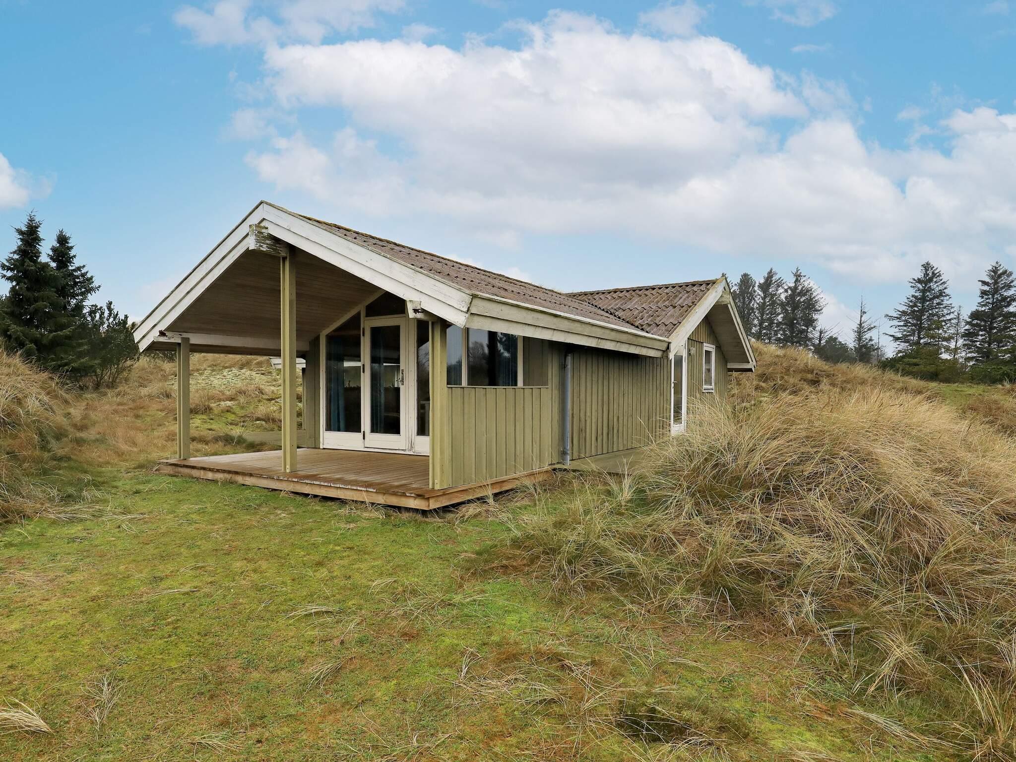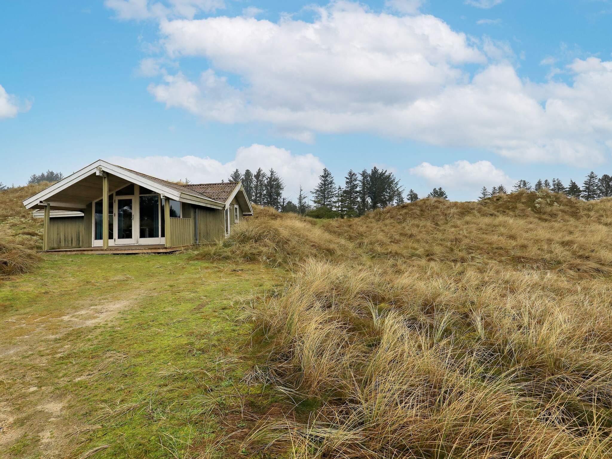 Godt og rummeligt sommerhus beliggende på en god grund med udsigt over fredede arealer. Huset har en unik indpasning i det smukke klitlandskab. Nyd naturen fra såvel åben som overdækket terrasse.