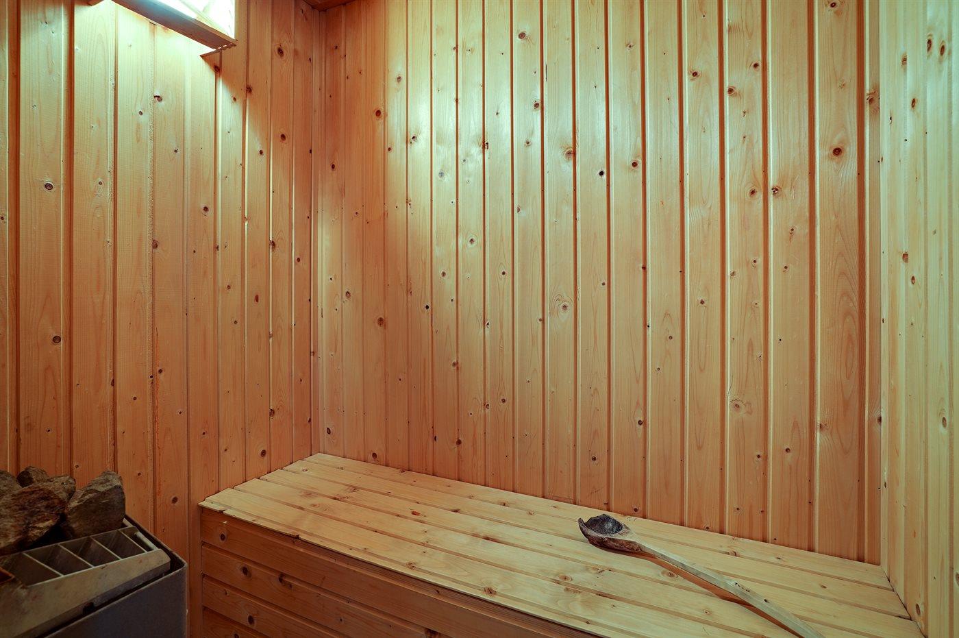 Der er 2 badeværelser med bruser og 2 toiletter. Der er gulvvarme på 1 badeværelse. I saunaen er der mulighed for afslapning.