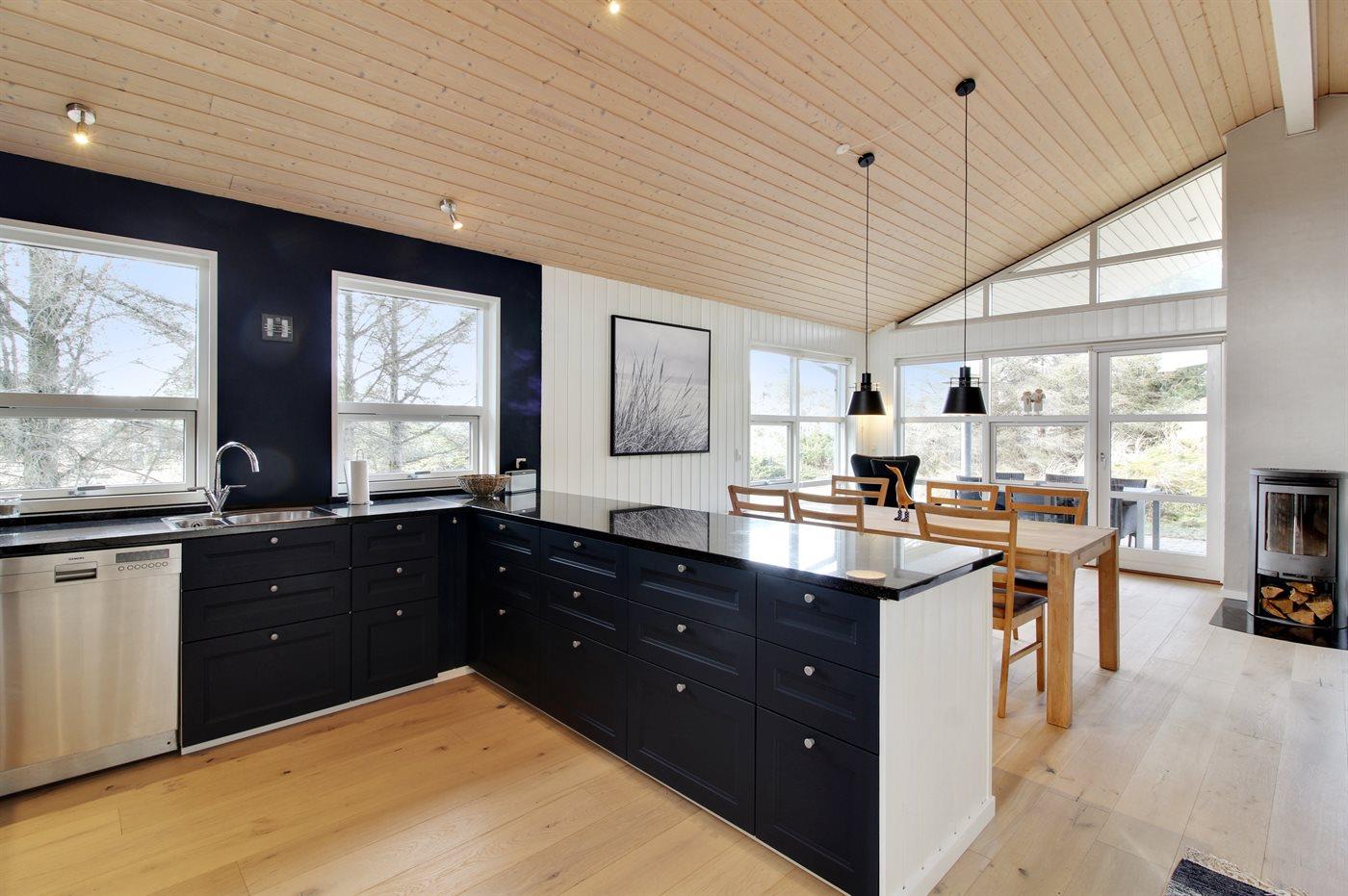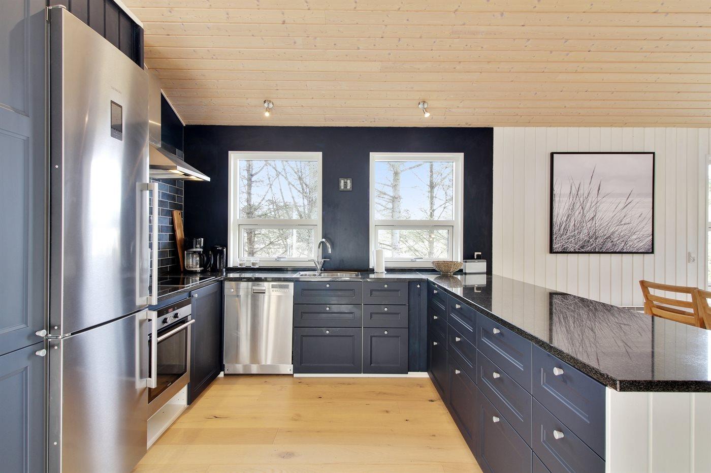 Køkkenet er udstyret med 1 køleskab. Der er 4 induktionskogeplader, varmluftovn, mikrobølgeovn samt opvaskemaskine.
