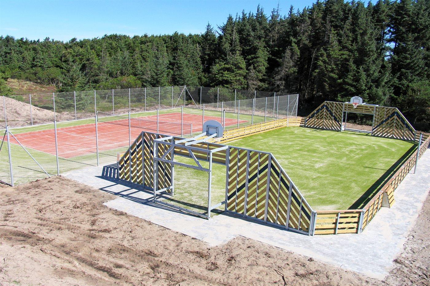 Huset er en del af en klynge flotte huse med fælles legeplads og multibane med mulighed for at spille tennis, håndbold og fodbold. Sommerhuset har terrasse på begge sider.