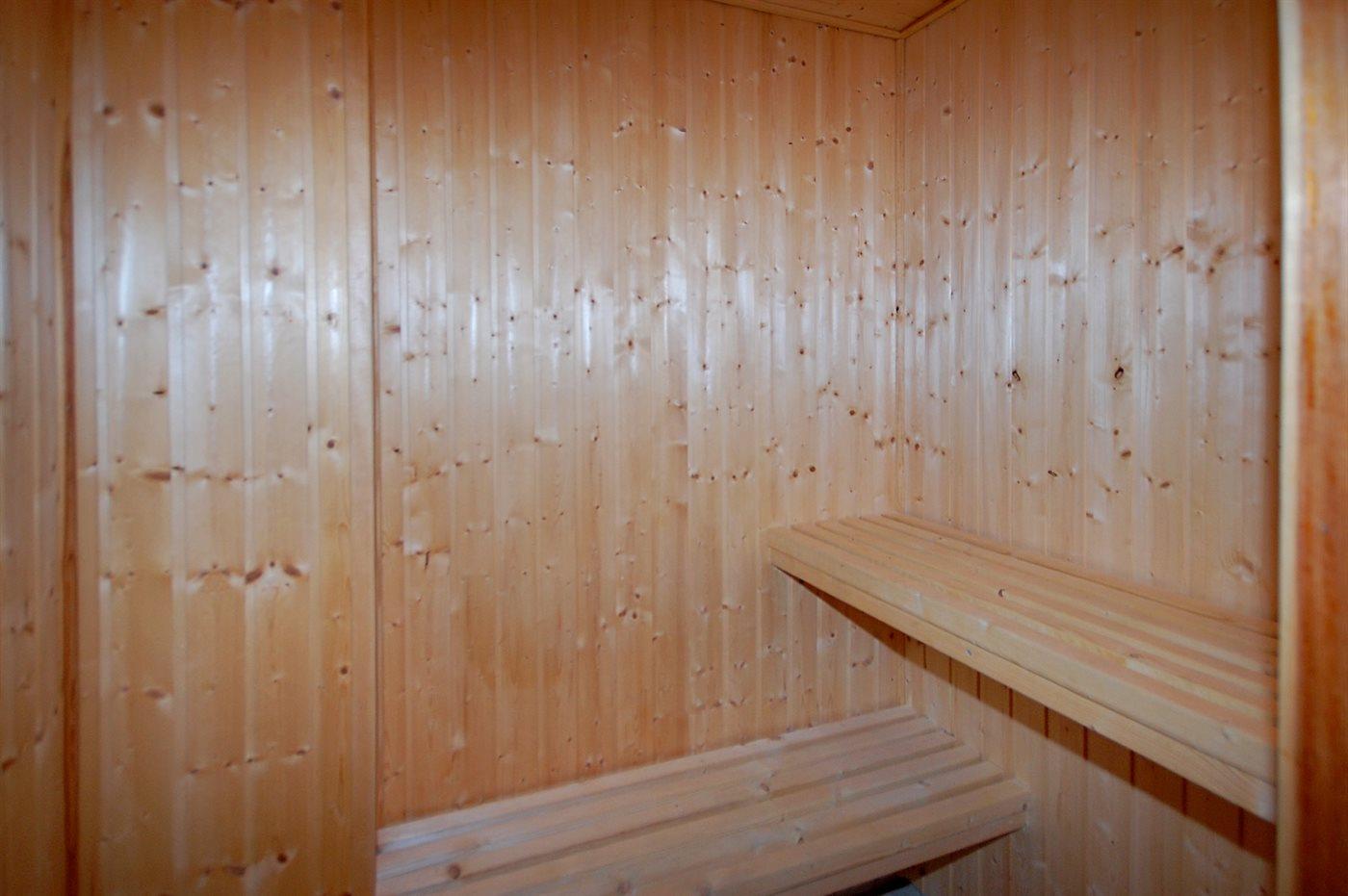 Der er 2 badeværelser med bruseniche og 2 toiletter. Der er gulvvarme på 1 badeværelse. I saunaen er der mulighed for afslapning.