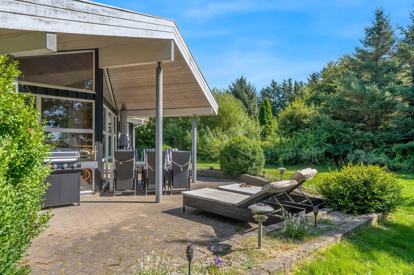 Ferieboligen er beliggende på en 1250 m² stor naturgrund. Grunden er indhegnet. Der er 1900 m til havet. Nærmeste forretning er beliggende i en afstand af 300 m. Til ferieboligen hører 40 m² terrasseareal. Desuden er der 16 m² overdækket terrasse. Der er redskabsrum. Der er carport til rådighed.