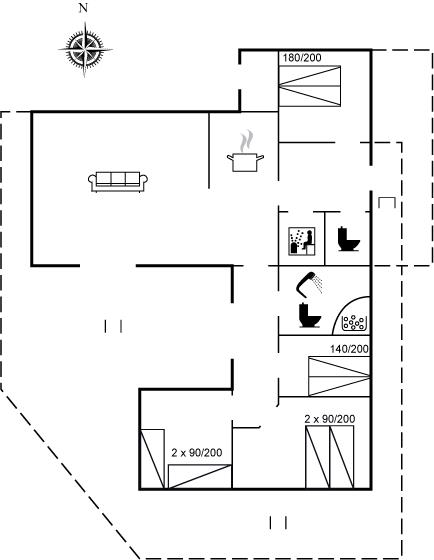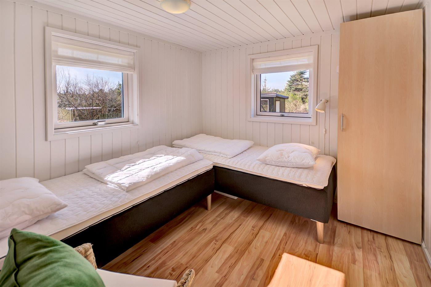 Der er i alt 4 soveværelser. Sovepladserne fordeler sig på: 6 sovepladser i dobbeltsenge. 2 sovepladser i enkeltsenge. Derudover er der 1 stk. barneseng.