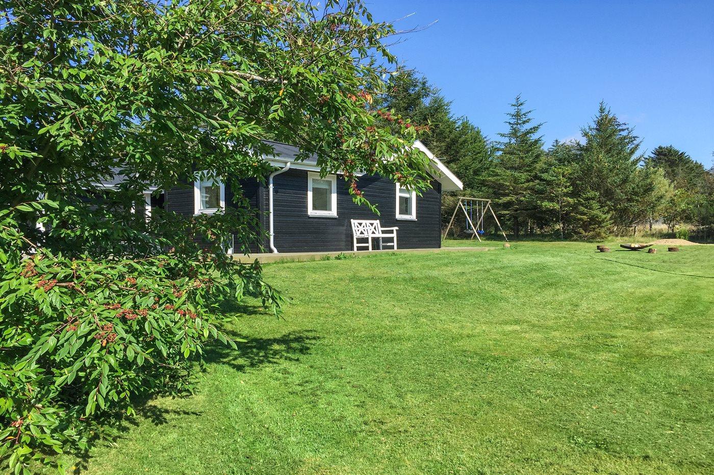 Ferieboligen er beliggende på en 2500 m² stor naturgrund. Der er 1700 m til havet. Nærmeste forretning er beliggende i en afstand af 1100 m. Til ferieboligen hører 90 m² terrasseareal. Desuden er der 6 m² overdækket terrasse. Gynge. Sandkasse. Bålsted. Parkering ved ferieboligen.