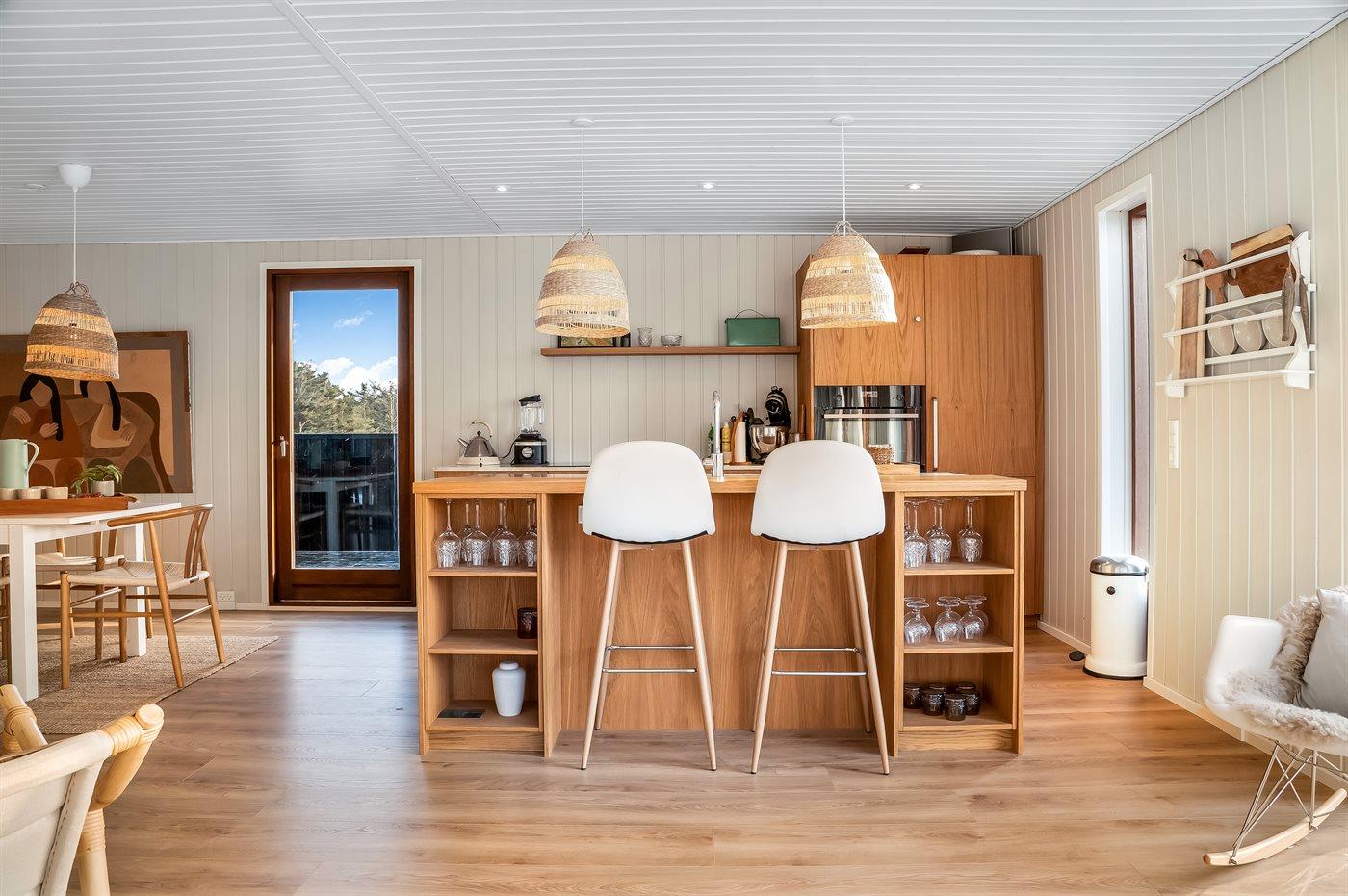 Indendørs byder huset på lyse, indbydende rum med moderne materialer og en afslappet sommerhusstemning, der indbyder til både ro og samvær. Her er de ideelle rammer for en uforglemmelig ferie – uanset om I søger afslapning, natur eller oplevelser.