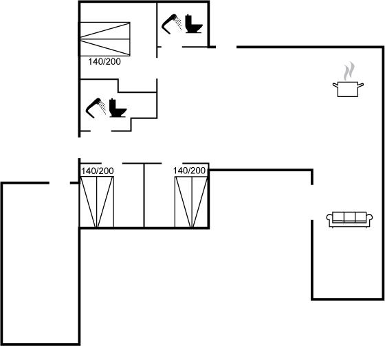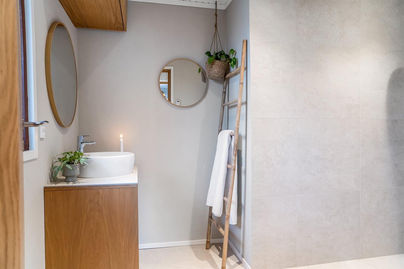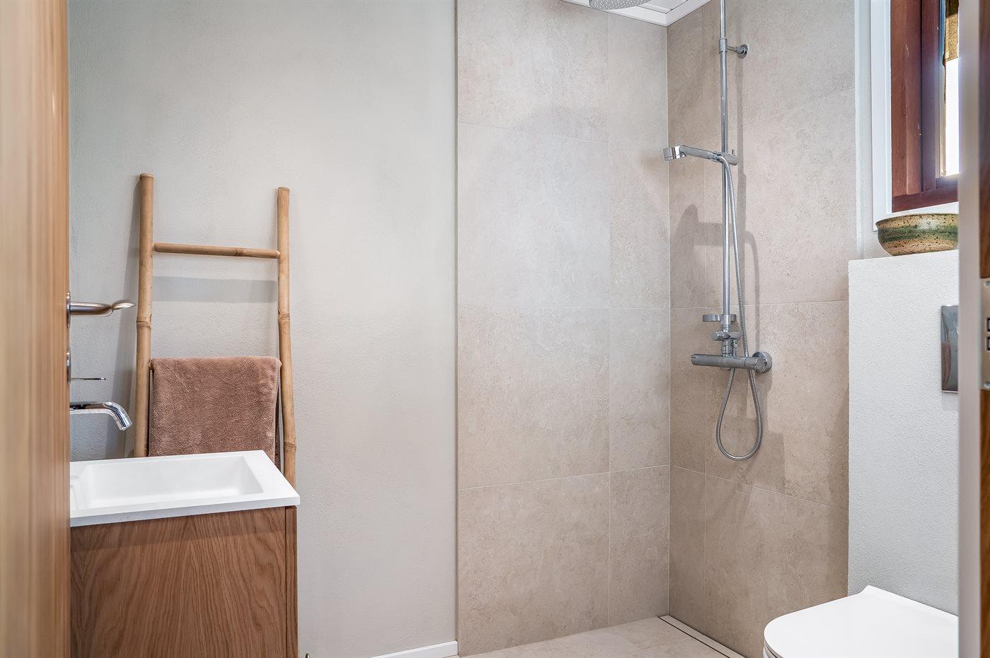 Der er 2 badeværelser med bruseniche og 2 toiletter. Der er gulvvarme på 2 badeværelser.