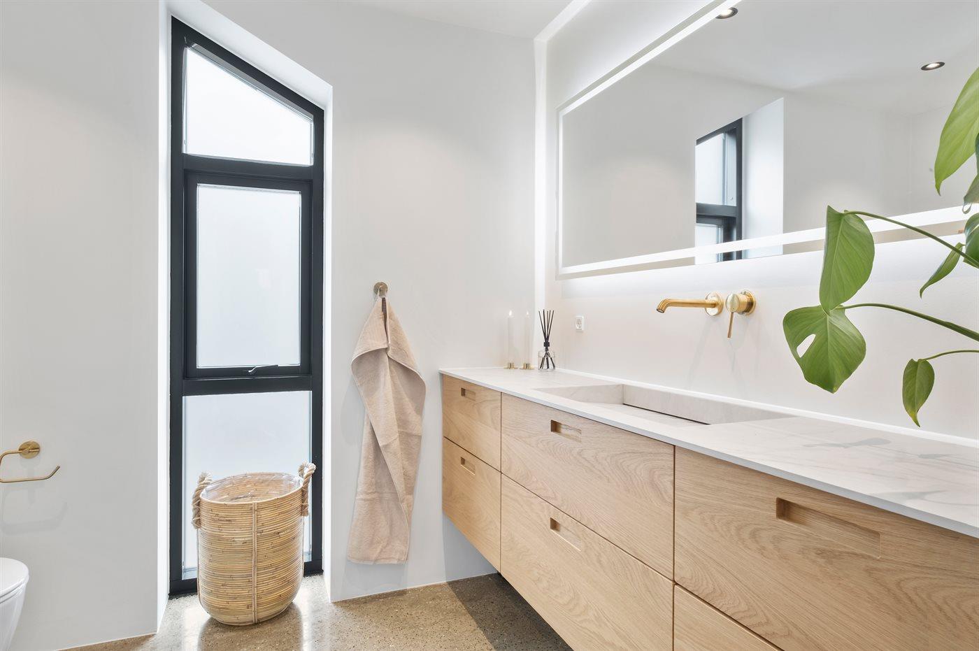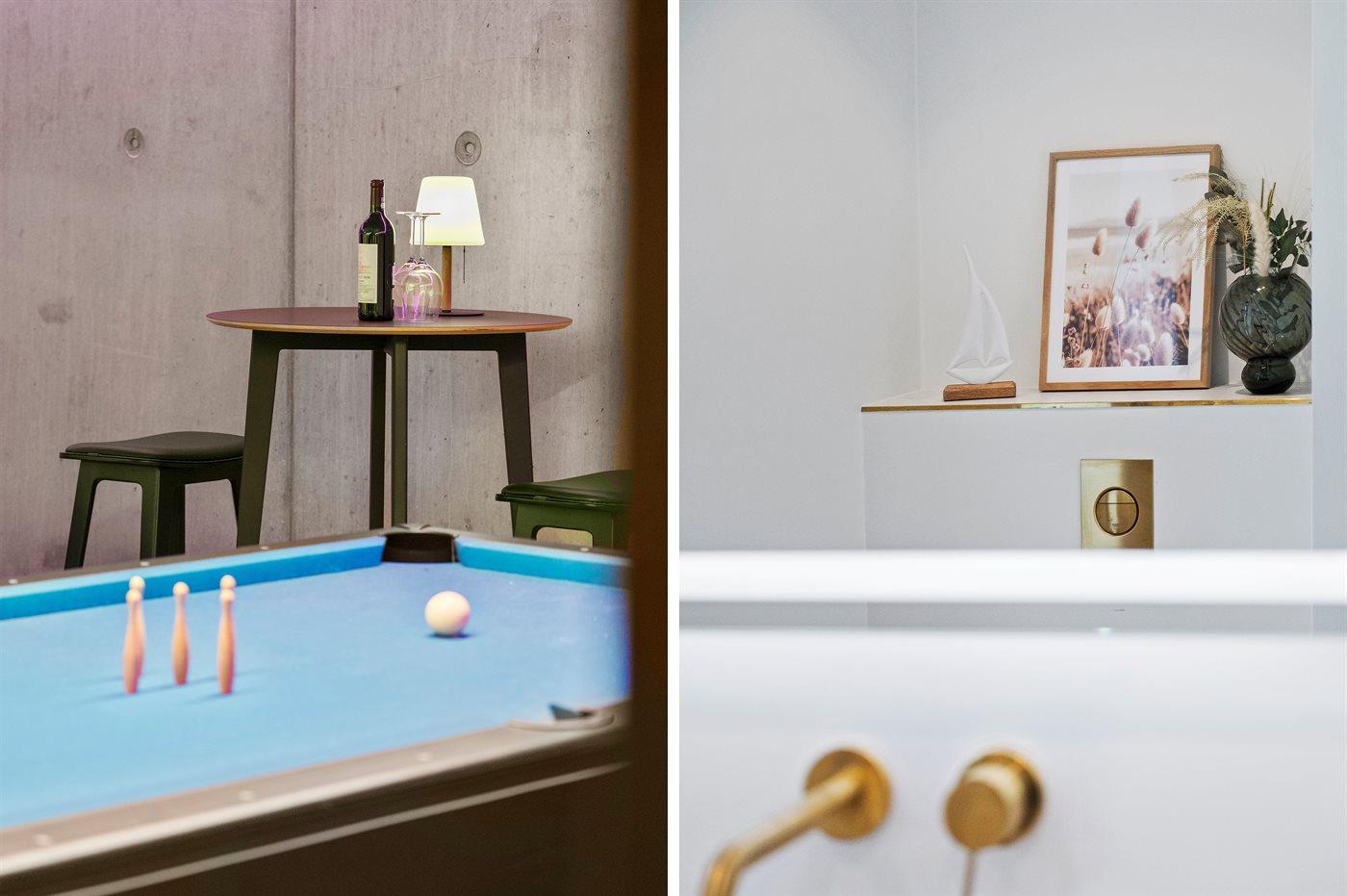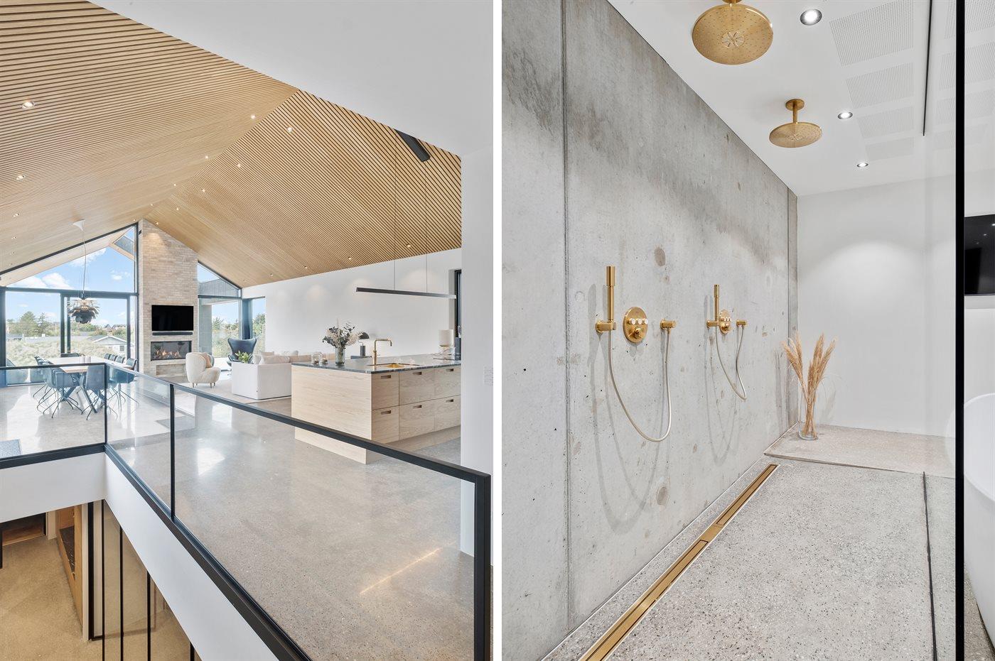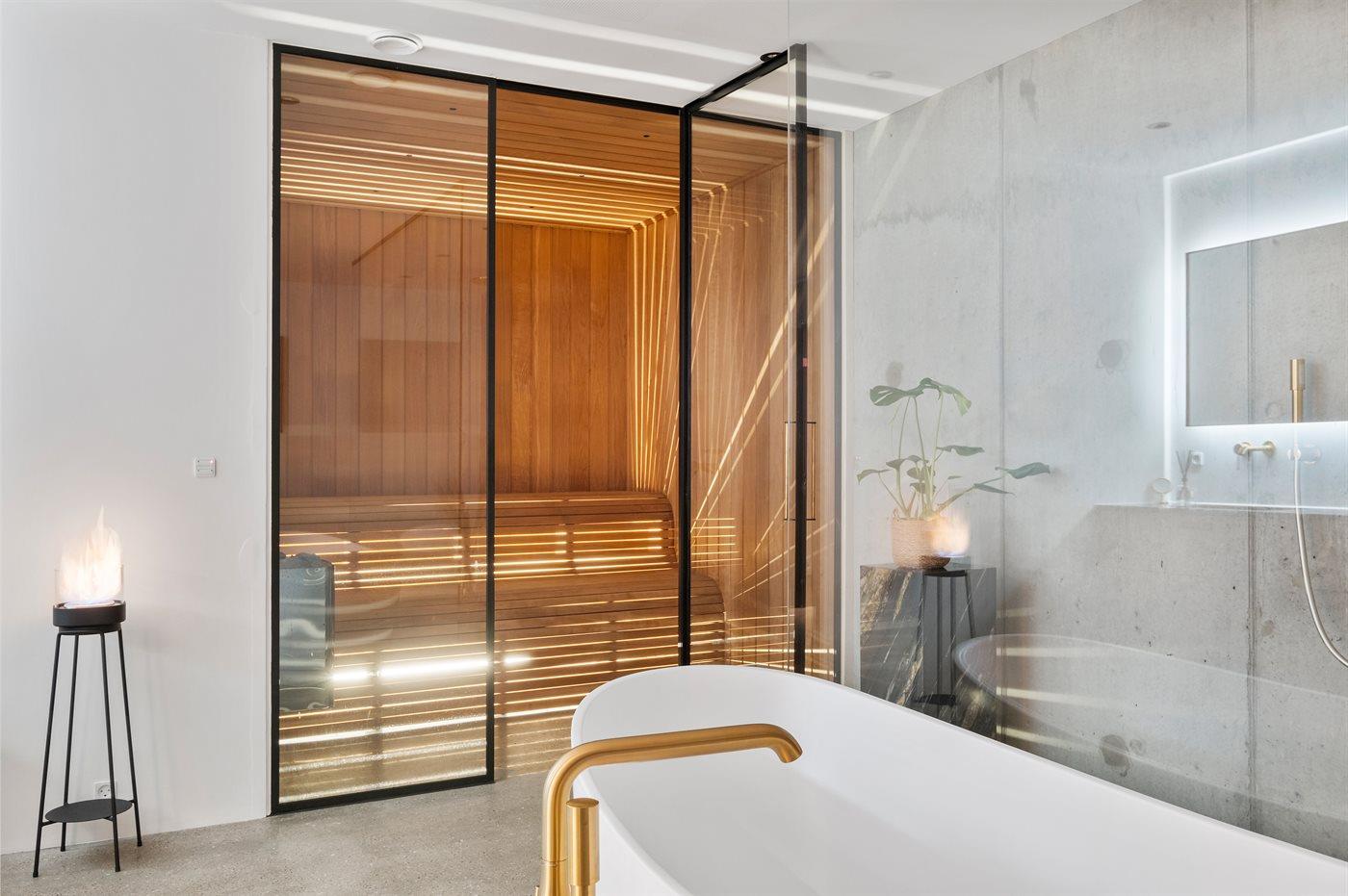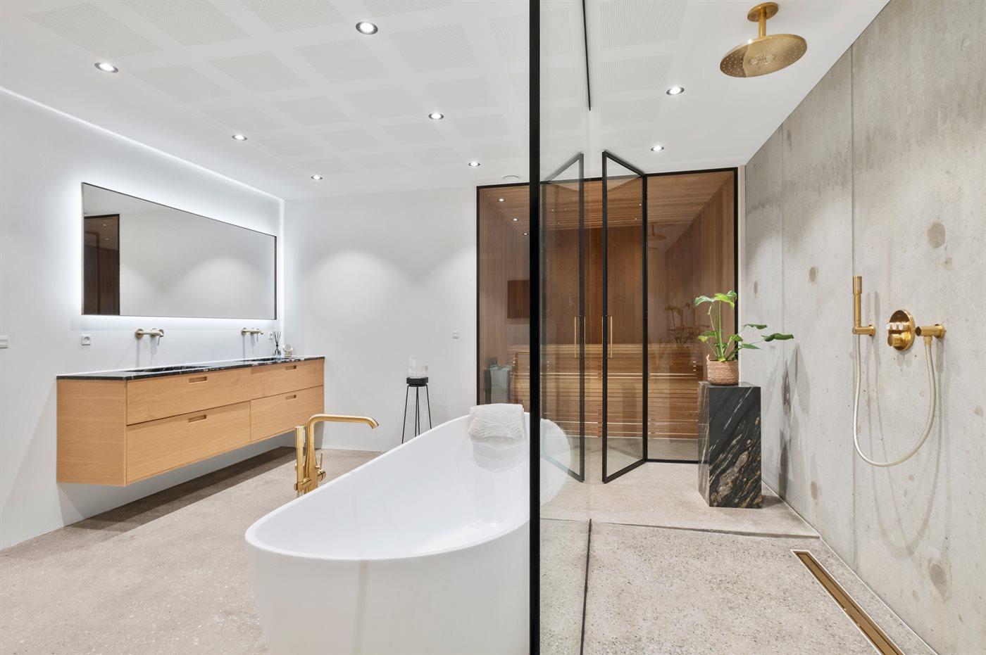 Der er 1 badeværelse med gulvvarme og badekar samt 2 badeværelser med gulvvarme og bruseniche. I saunaen er der mulighed for afslapning.