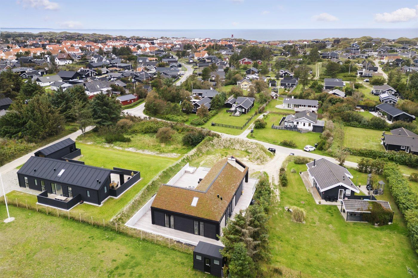 Ferieboligen er beliggende på en 1250 m² stor klitgrund. Der er 800 m til havet. Nærmeste forretning er beliggende i en afstand af 500 m. Der er en golfbane i en afstand af 4000 m. Til ferieboligen hører 280 m² terrasseareal. Desuden er der 20 m² overdækket terrasse. Grill til rådighed. Der er garage til rådighed. Parkering ved ferieboligen. Der er en multibane til rådighed.