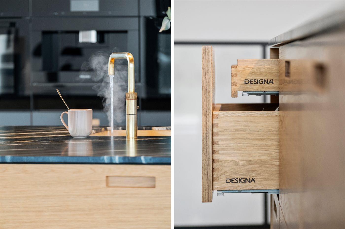 Køkkenet er udstyret med 1 køleskab. Der er 4 induktionskogeplader, 2 varmluftovne, mikrobølgeovn samt opvaskemaskine.