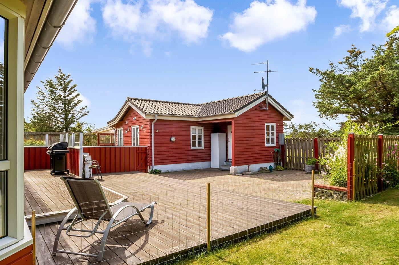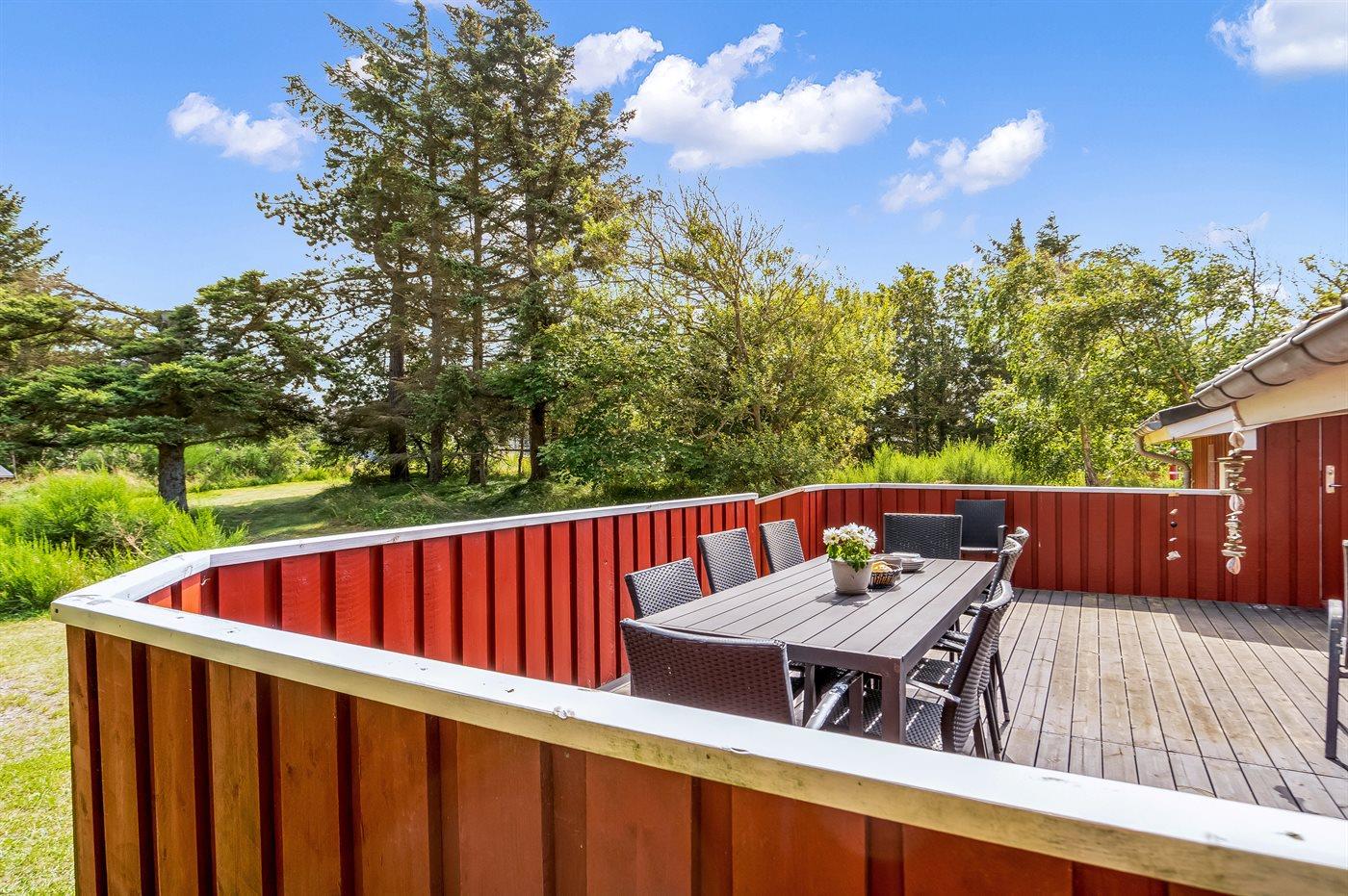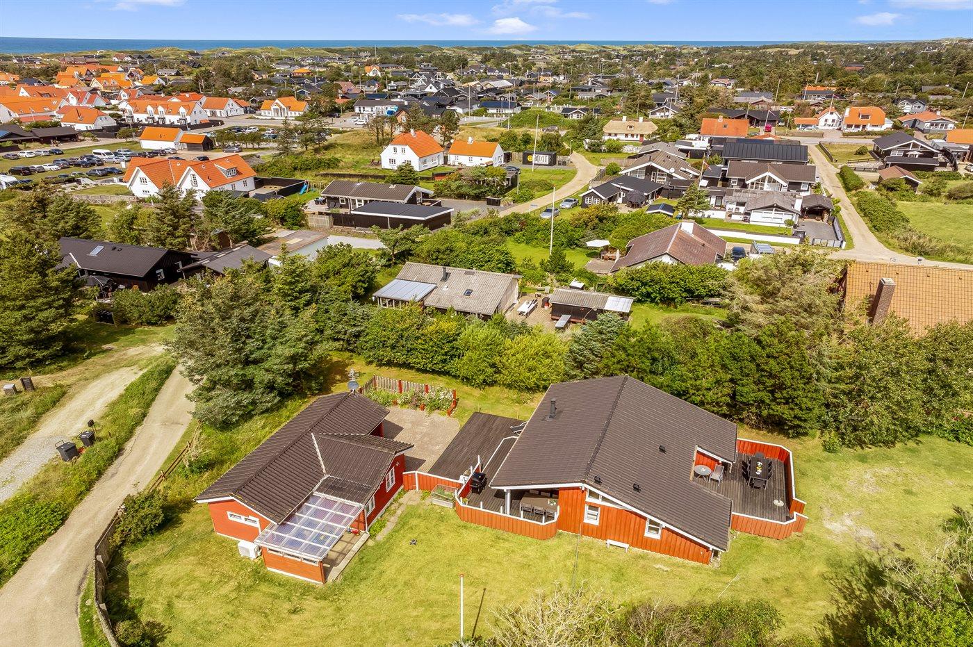 Ferieboligen er beliggende på en 2215 m² stor naturgrund. Der er 700 m til havet. Nærmeste forretning er beliggende i en afstand af 500 m. Der er en golfbane i en afstand af 5000 m. Til ferieboligen hører til dels overdækket terrasse og lukket terrasse. Der er redskabsrum. Grill til rådighed. Parkering ved ferieboligen.