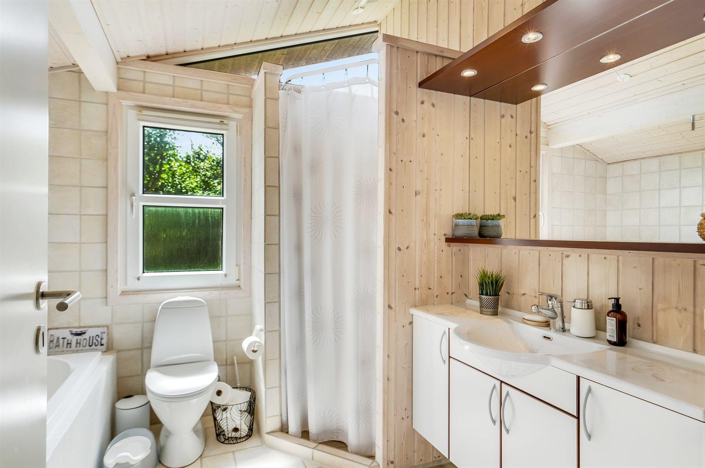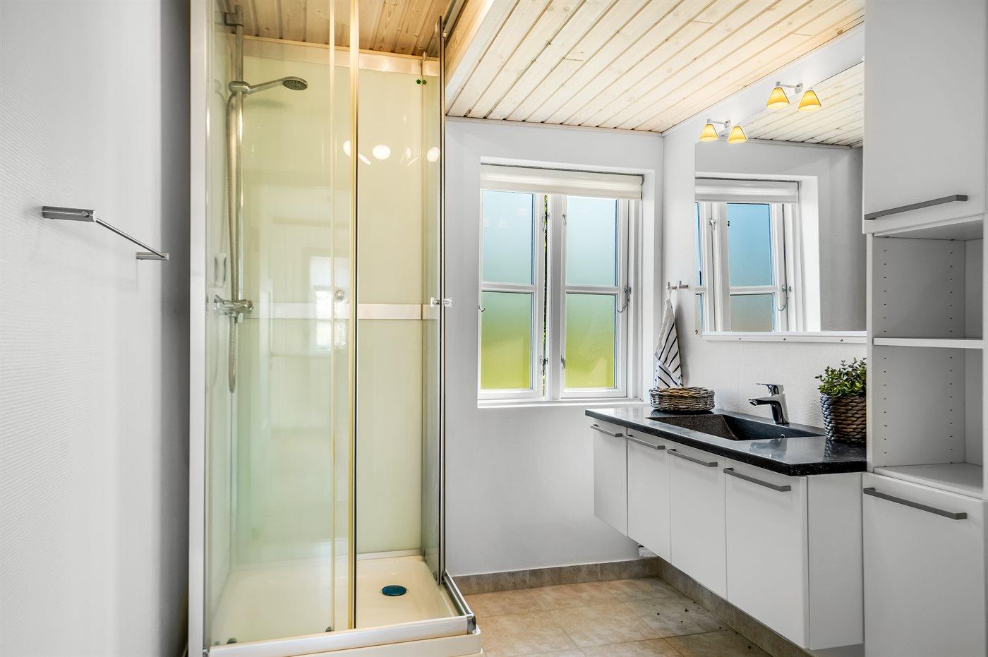 Der er 2 badeværelser med bruseniche og 2 toiletter. Der er gulvvarme på 1 badeværelse.