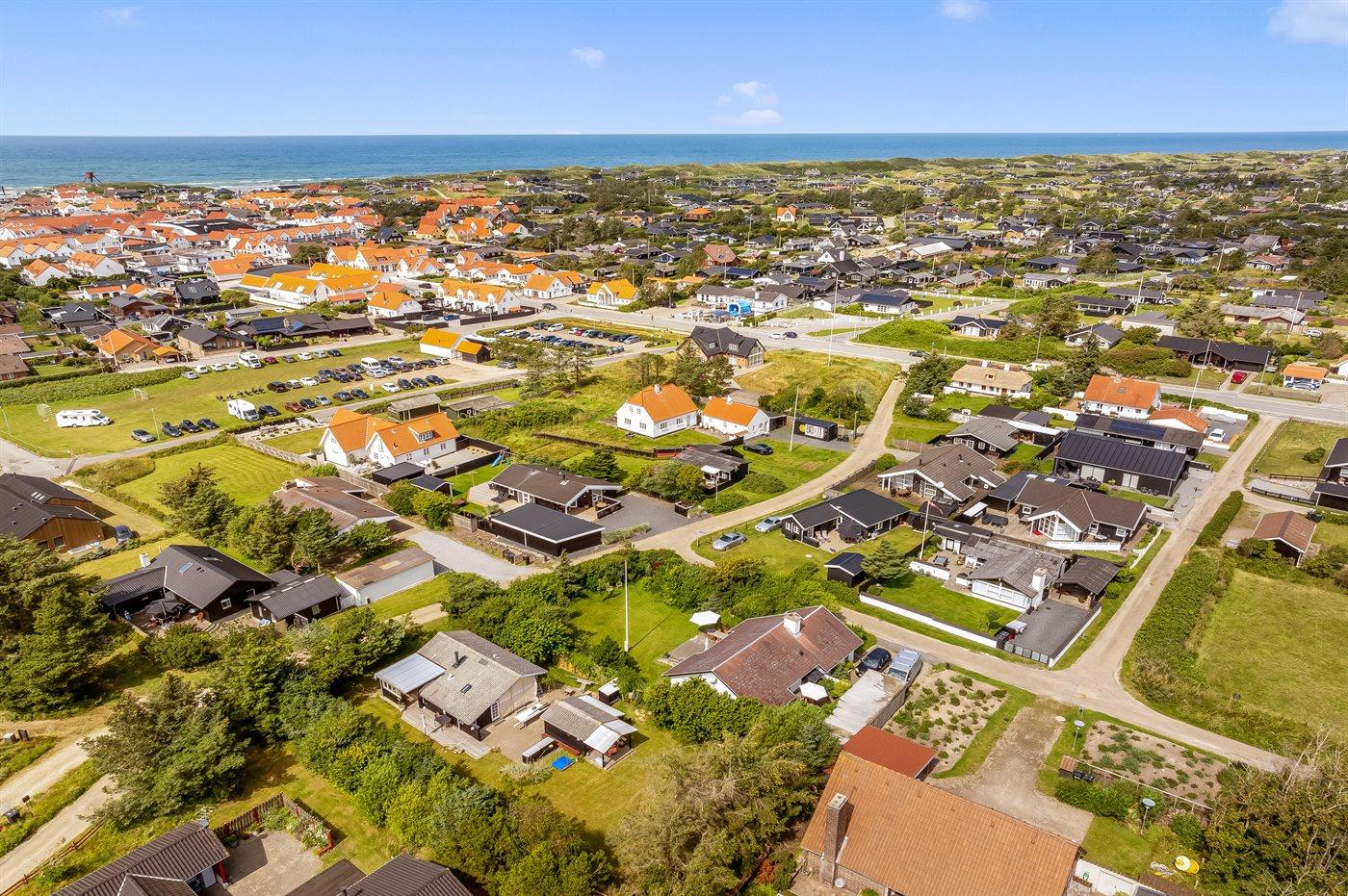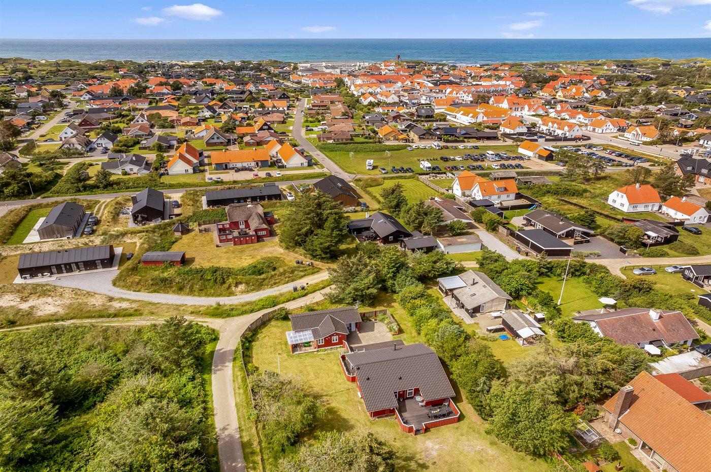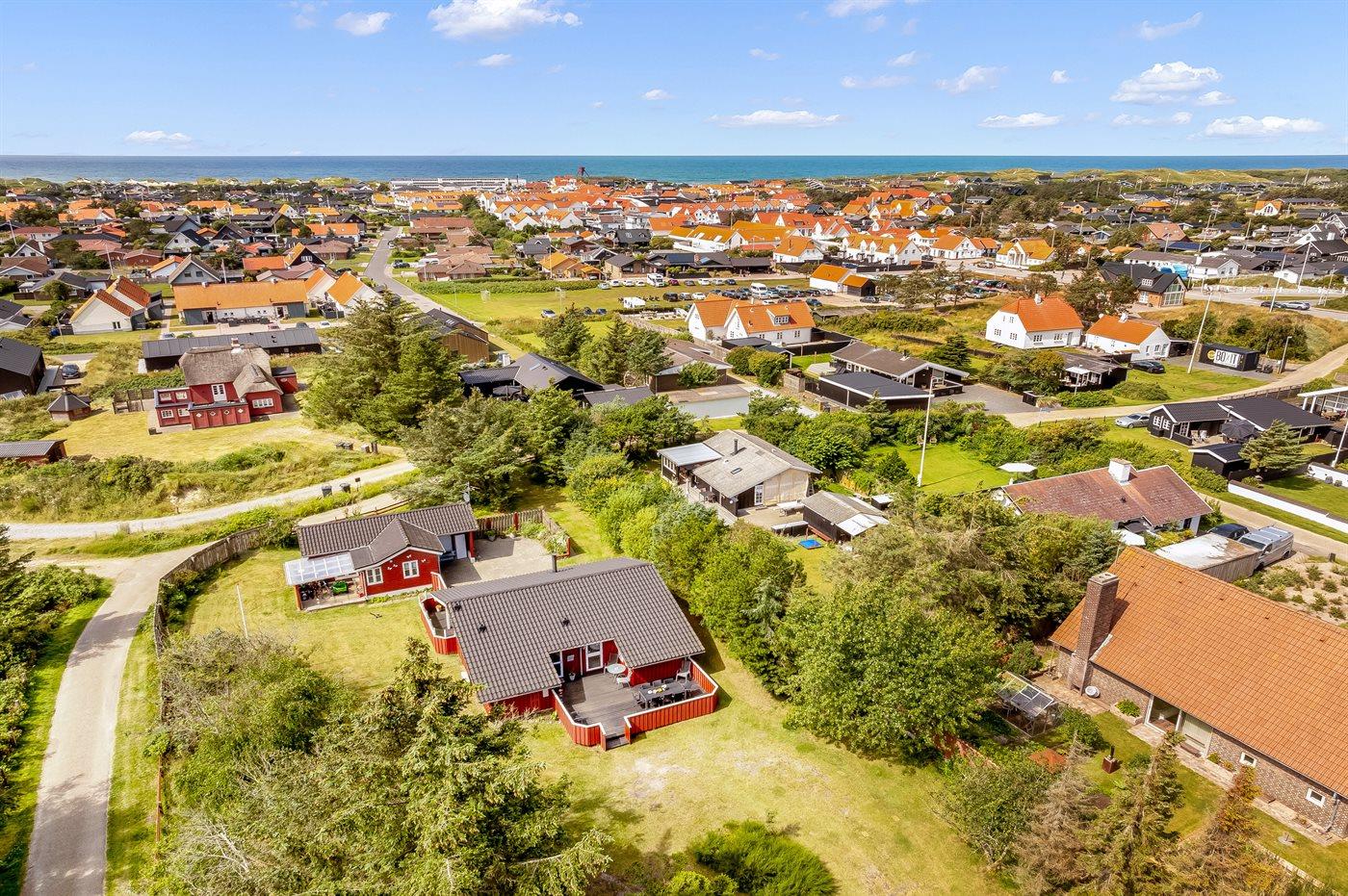 Med en central beliggenhed i feriebyen Blokhus finder man dette skønne sommerhus på en stor og dejlig grund. Huset ligger i gåafstand til byens centrum, stranden og det vidunderlige Vesterhav. Så ønsker man at shoppe, besøge en af byens caféer eller bare slappe af på stranden, så kan alt dette gøres inden for få minutters gang fra huset.