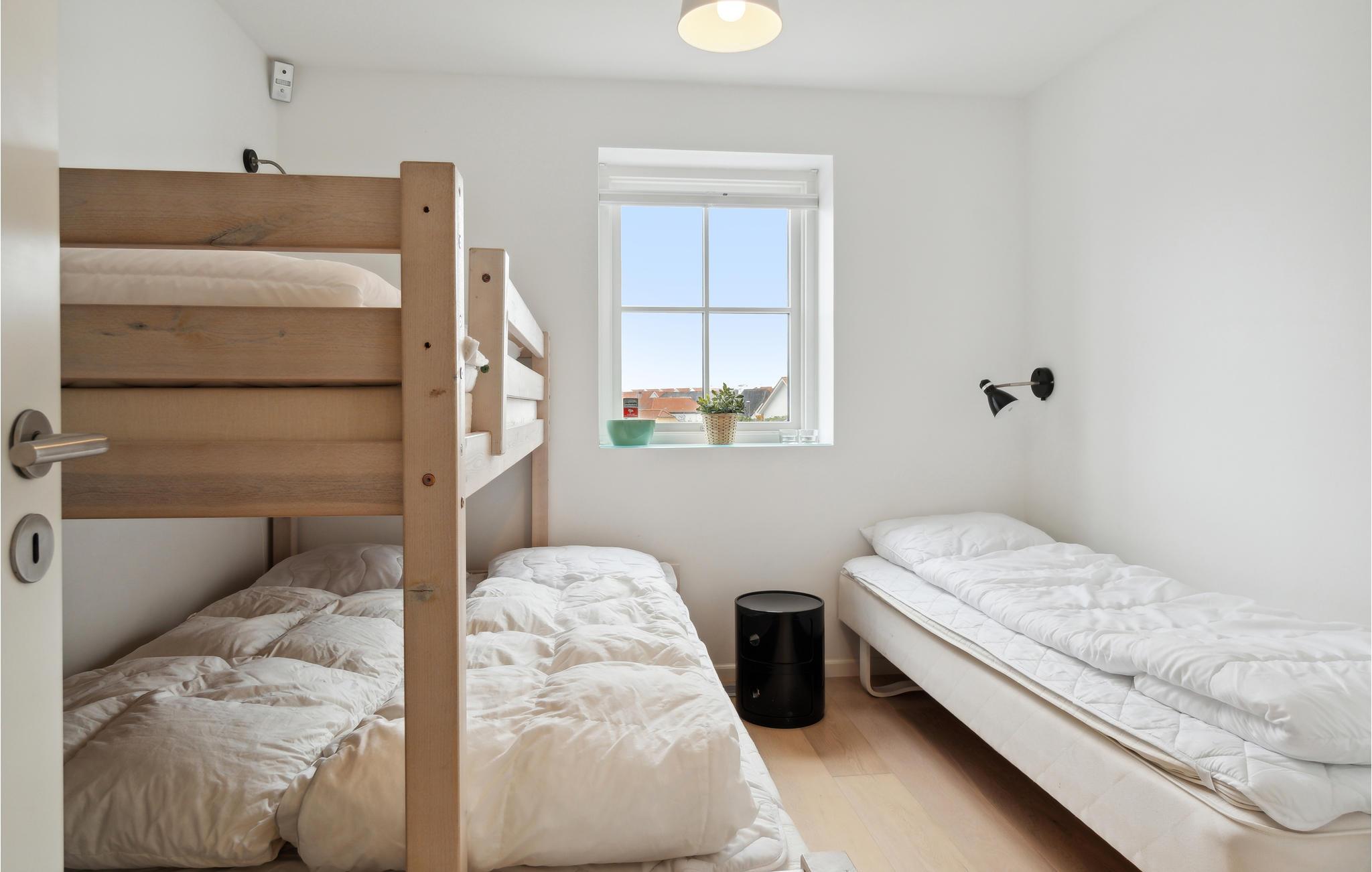 Soveværelse (nr. 2) - 1 Soveplads. (Enkeltseng(e)). 2 Sovepladser. (Dobbeltseng(e)). 1 Soveplads. (Etageseng(e)).