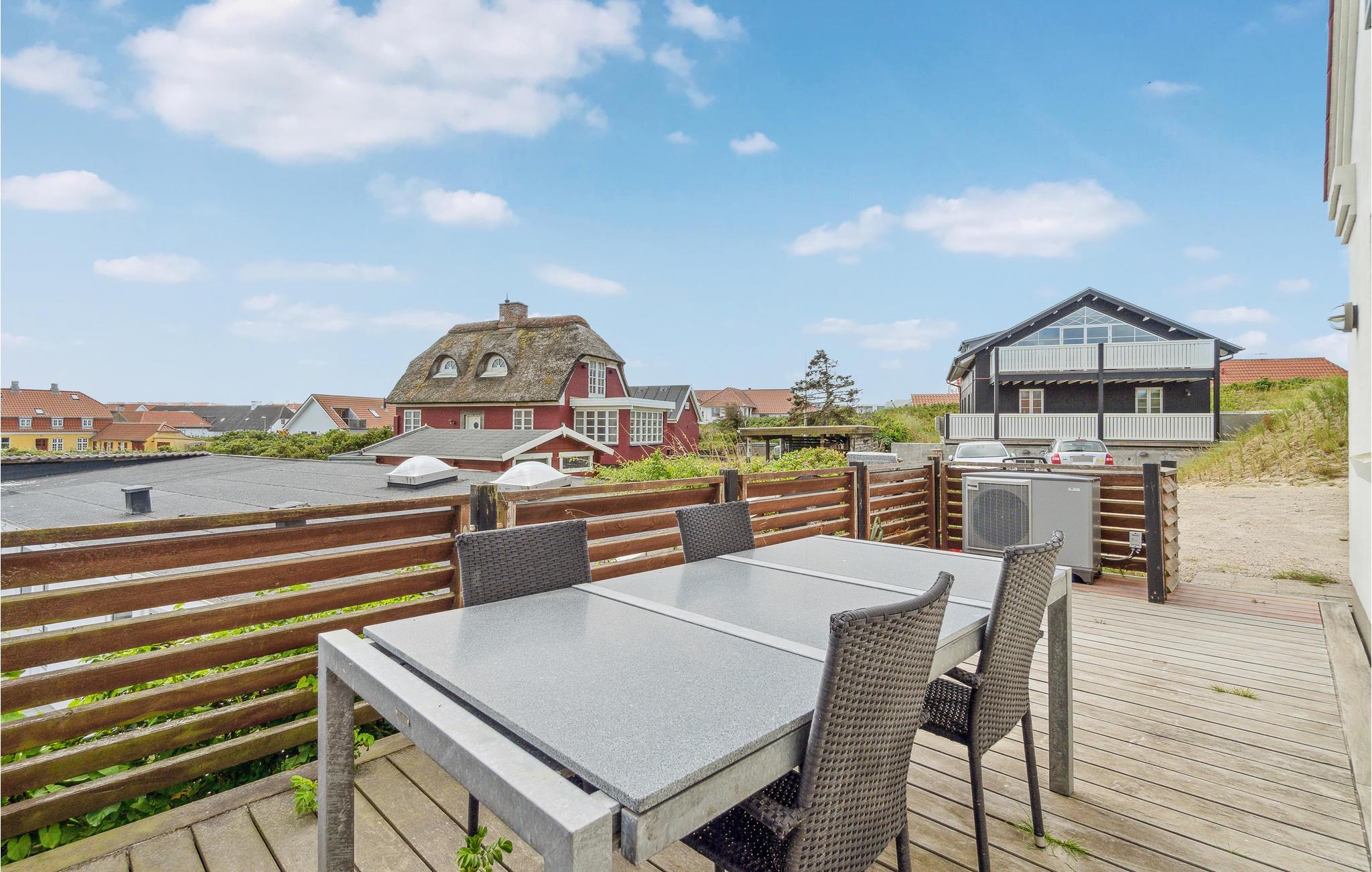 Der er også lagt op til hyggelige stunder udendørs, for rundt om huset er der mange gode kroge, hvor I kan sætte jer med en kop kaffe og nyde de flotte omgivelser. Sommerdagene ender med lækre grillretter og lange aftener på terrassen. Balkonen giver jer en enestående udsigt til solnedgangen over Vesterhavet.