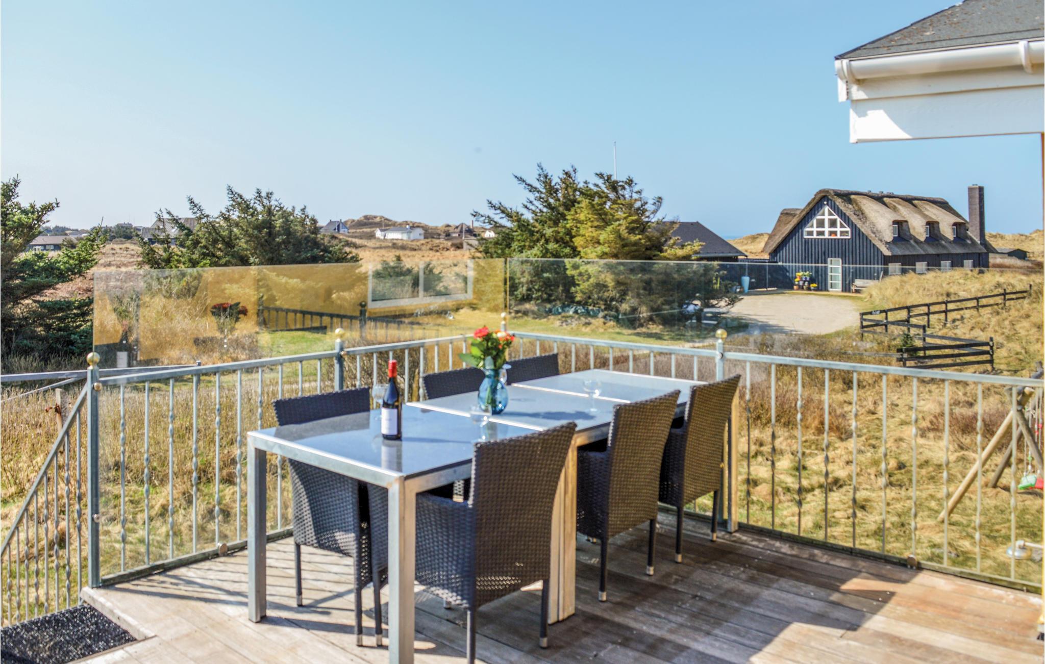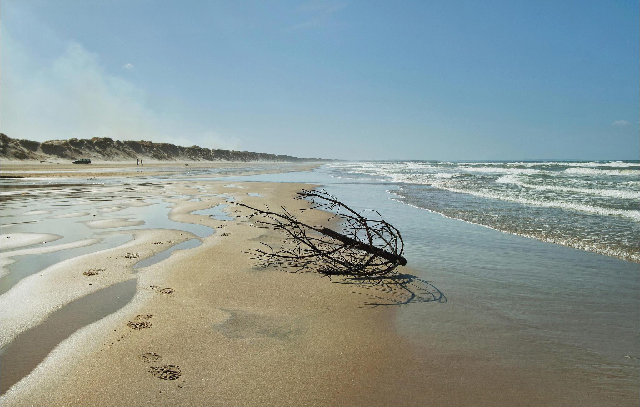 Tilbring jeres ferie i dette lyse, moderne feriehus, der smelter harmonisk sammen med klitlandskabet ved den jyske vestkyst. Her finder I fred, åbne vidder og duften af ??havet – ideelt til at lægge hverdagen bag jer og genoplade batterierne. Huset kan fremvise en indbydende, åben planløsning, store vinduer og smagfulde møbler i skandinavisk stil. Læn jer tilbage i den hyggelige stue med brændeovn, to komfortable sofaer og varm belysning. Tilbered lækre retter i køkkenet og nyd dem i den indbydende spiseplads. Brug saunaen til at slappe af efter en gåtur på stranden.