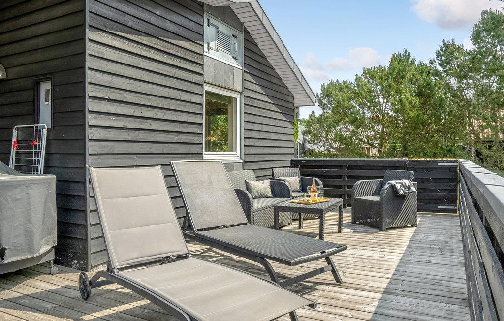 Moderne sommerhus tæt på Boeslum Strands strand med stor terrasse og sauna, perfekt til hyggelige ferier i naturskønne omgivelser.