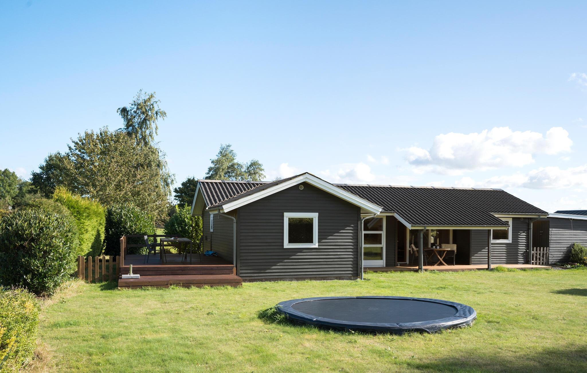 Jeres feriehus er omgivet af en rummelig have, der tilbyder masser af plads til afslapning og fritidsaktiviteter. Nyd solrige dage på terrassen med udsigt over det grønne landskab og det glitrende hav i baggrunden. Lad børnene hoppe på trampolinen og lege udenfor. Inde i huset venter en venlig og lys indretning jer. Det åbne køkkenalrum inviterer til fælles madlavning og til at nyde måltider ved spisebordet med udsigt til haven. Slap af på den hyggelige sofa i stuen, der er beklædt med varmt træ, og tilbring jeres aftener med sjove brætspil eller løs et udfordrende puslespil sammen.