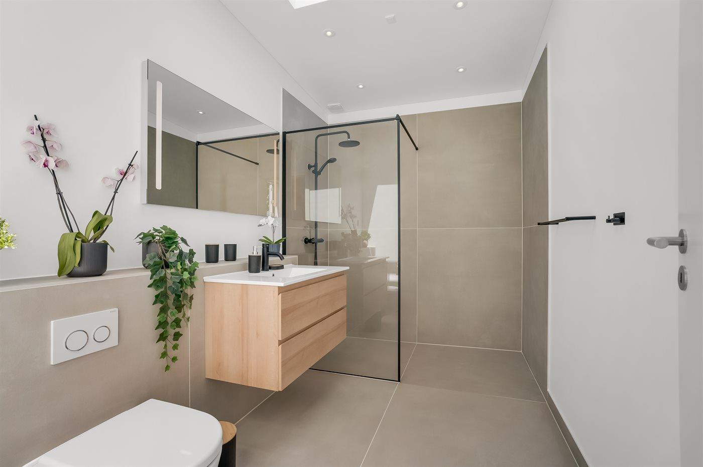 Der er 1 badeværelse med bruseniche og 1 toilet.. Der er gulvvarme på 1 badeværelse.