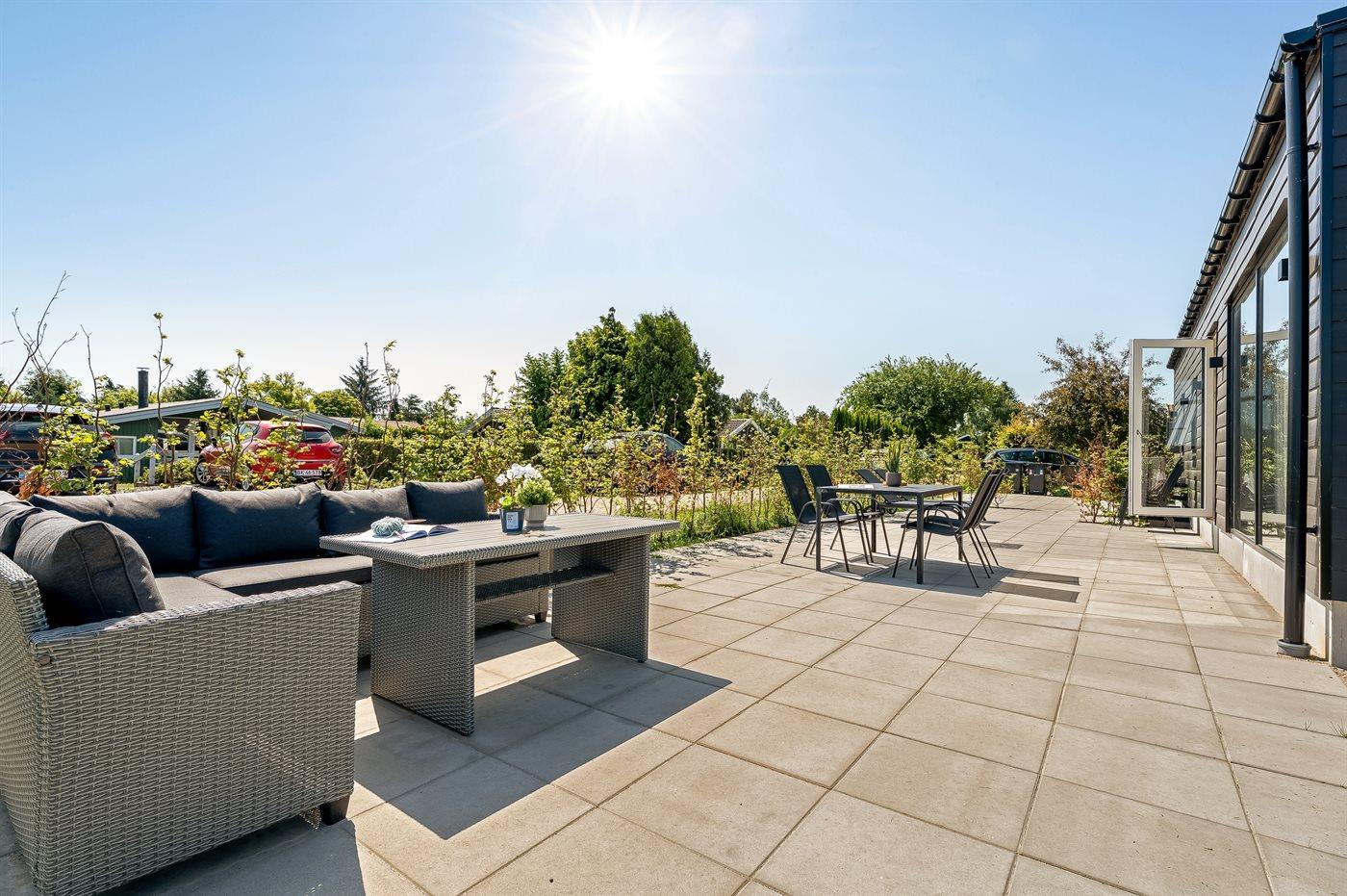 Der findes et stort terrasseareal med plads til hygge, grillaftener eller bare til at nyde solen og de skønne feriedage. Der er grill til rådighed.