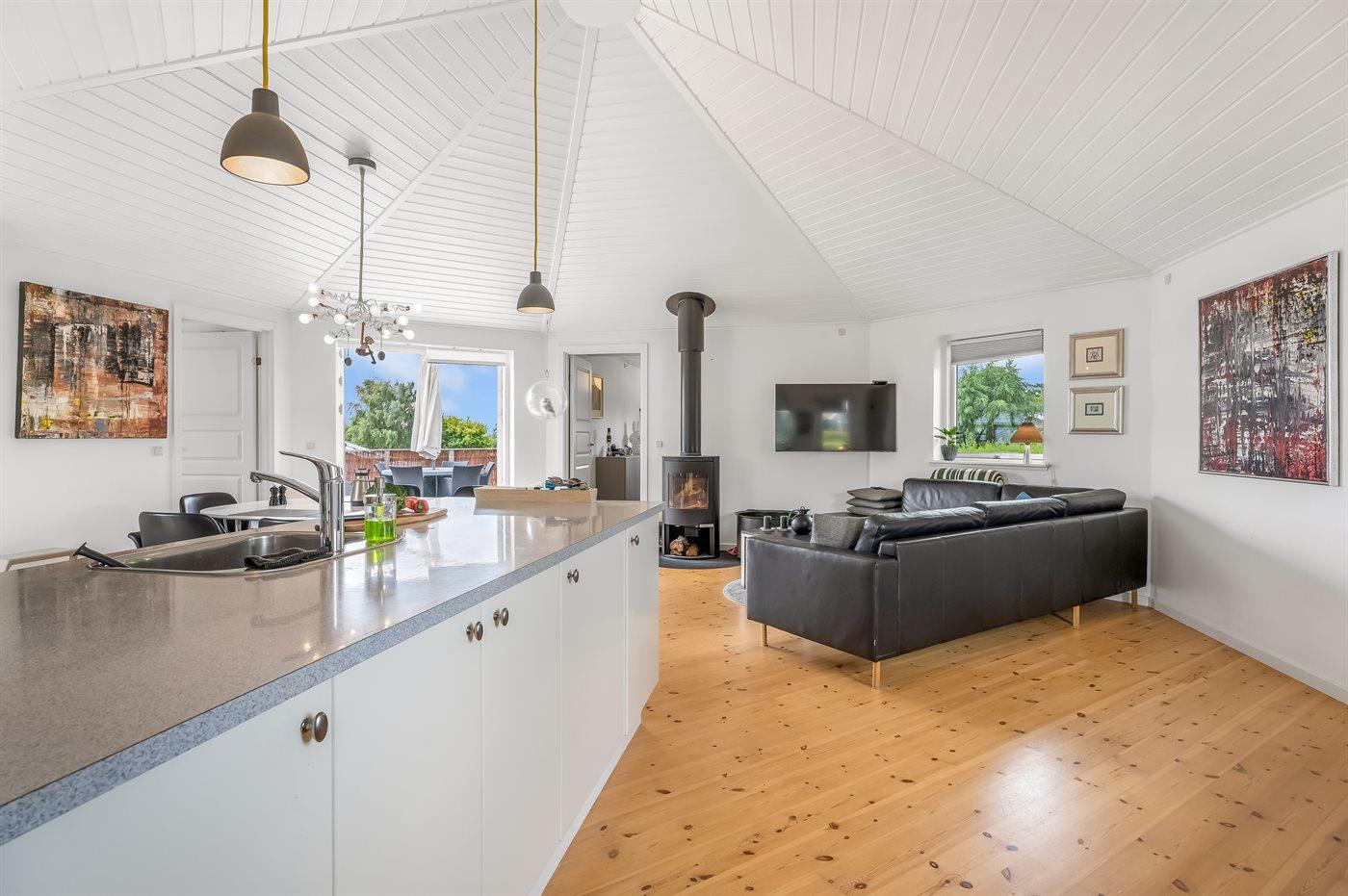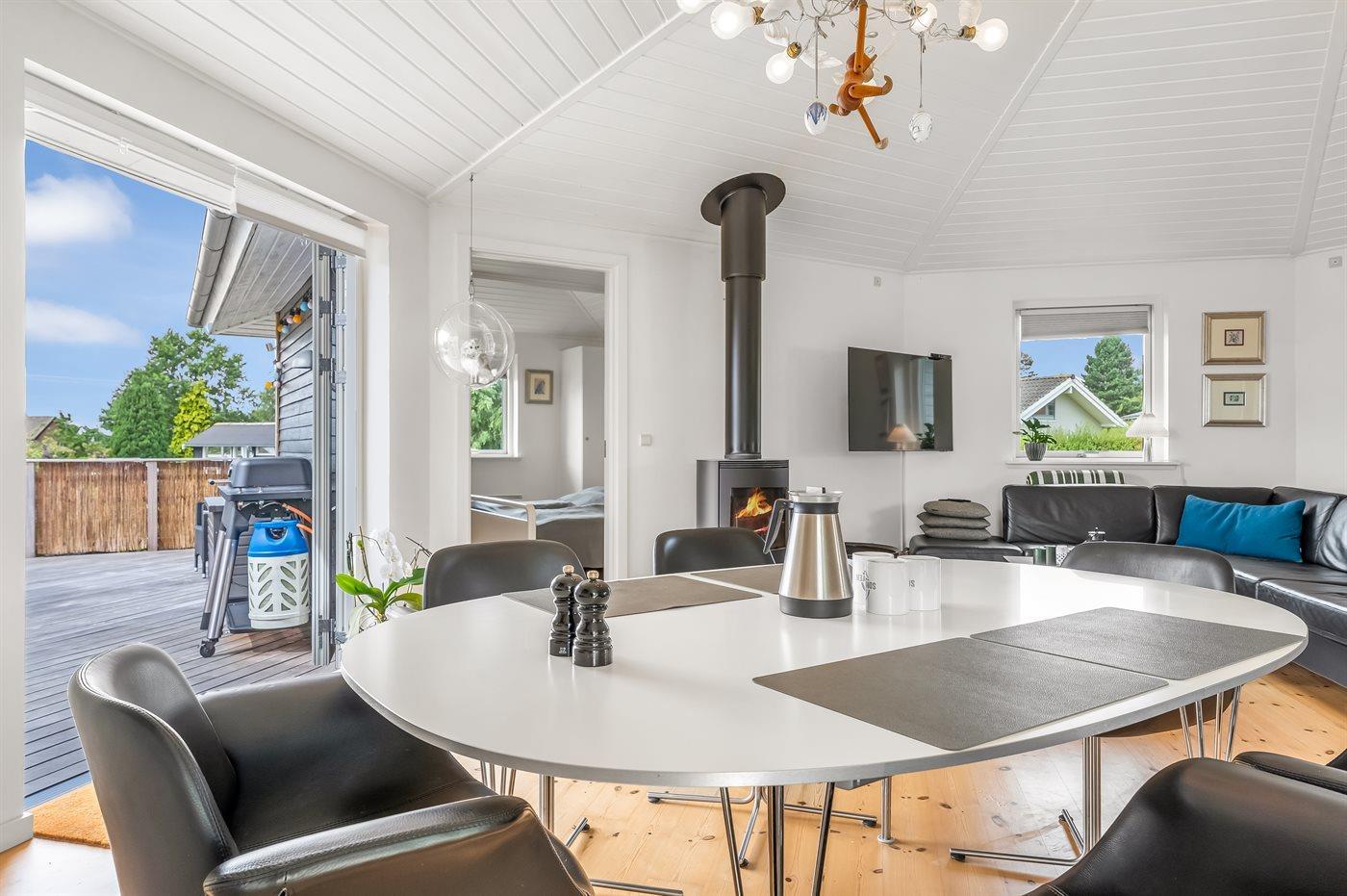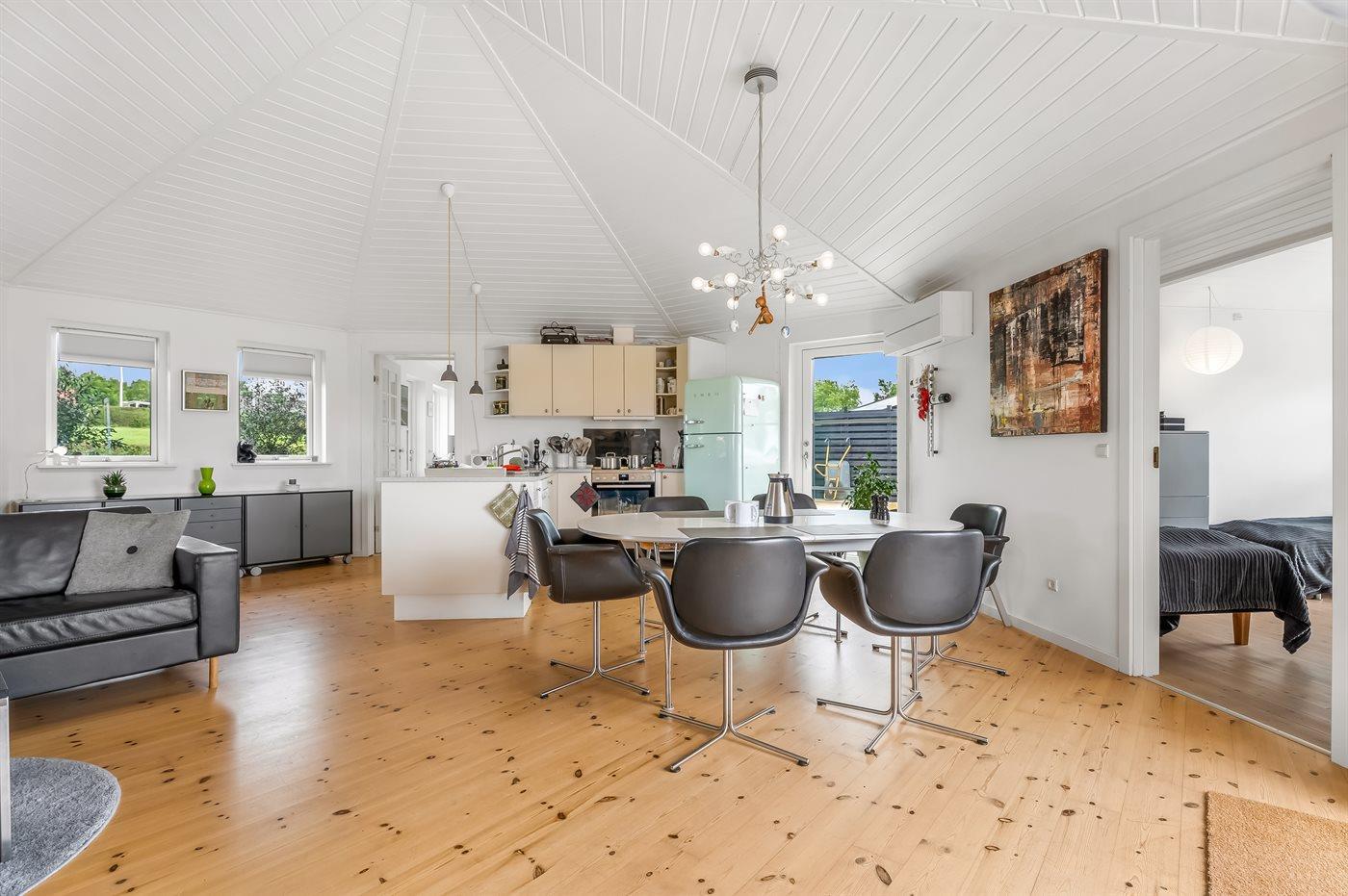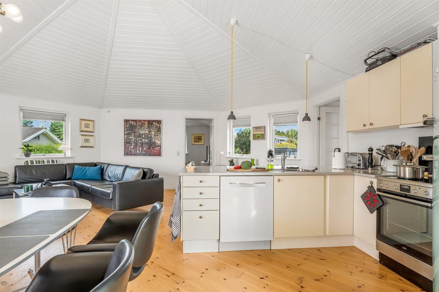 Sommerhuset har god plads til hygge i køkken alrum, 3 dobbeltsenge og 2 enkeltsenge fordelt på 4 værelser samt 2 badeværelser, hvor det ene badeværelse er helt nyt fra 2025/2026.