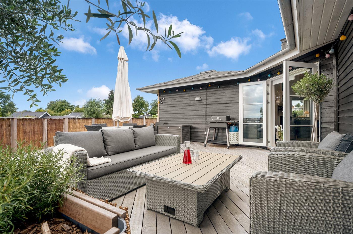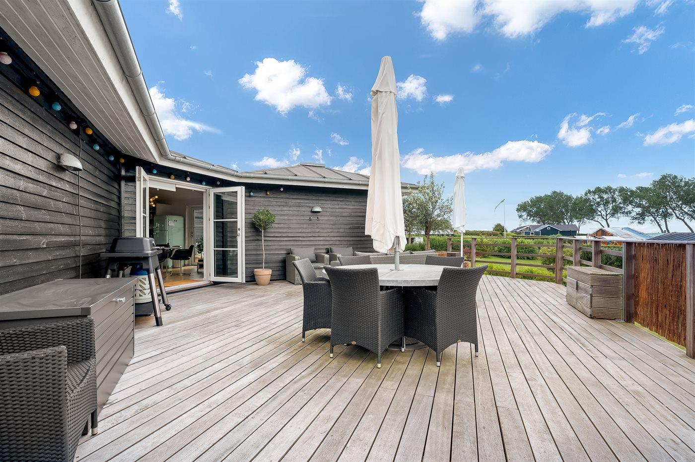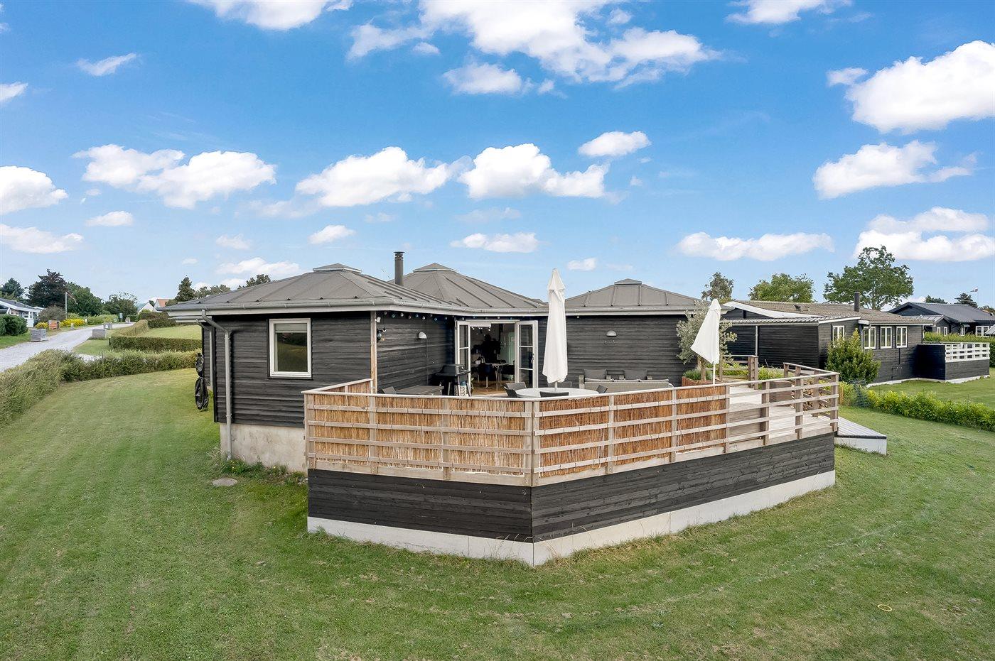 I 1. række ligger dette utrolige, hyggelige hus med plads til 8 personer. Ferieboligen har udsigt ud over havet fra grund og hus og har en fantastisk, stor træterrasse med lounge møbler m.m. - skal bare opleves.