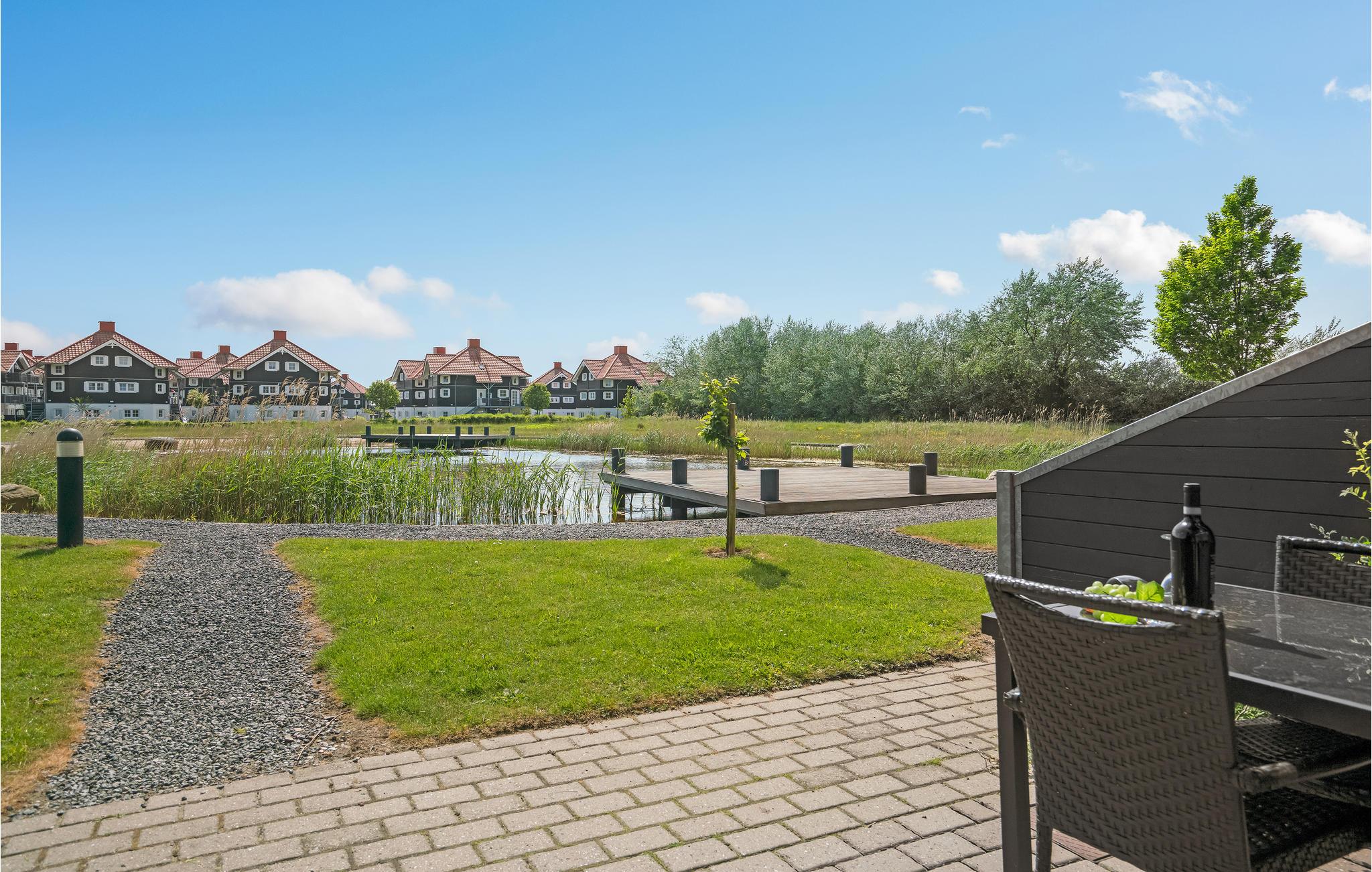Slap af på den åbne terrasse med udsigt til en lille sø.