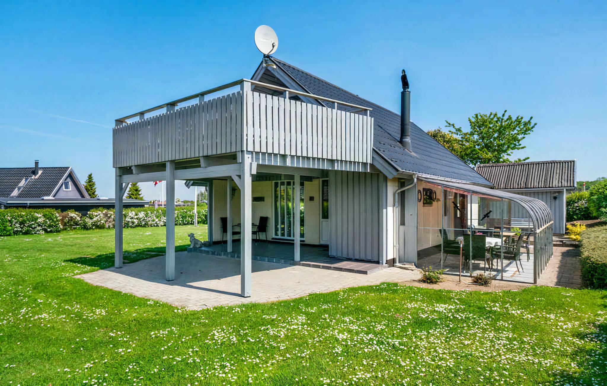 Skønt sommerhus ved Bogense med havudsigt, flere terrasser og kun 200 m til børnevenlig strand.