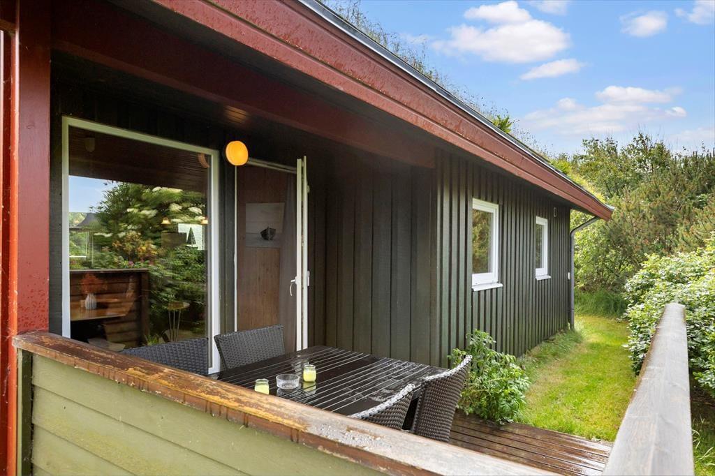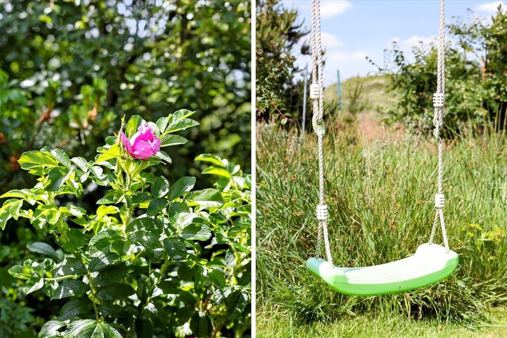 Udearealerne er særdeles skønne, for der er masser af plads på naturgrunden, og hybenbuske og anden bevoksning skærmer terrasser og legefaciliteter godt af, så du og familien kan leve det søde ferieliv i ugenerede omgivelser. Der er terrasser mod både øst og vest, og du kan også slå dig ned på den røde bænk ved siden af huset, hvis du vil have græs under tæerne, mens du drikker din formiddagskaffe. På et græsklædt område er der sandkasse og et legestativ med gynger og rutsjebane, så børnene har noget at underholde sig med, mens de voksne får gang i grillen og nyder en kølig forfriskning, inden det er spisetid.