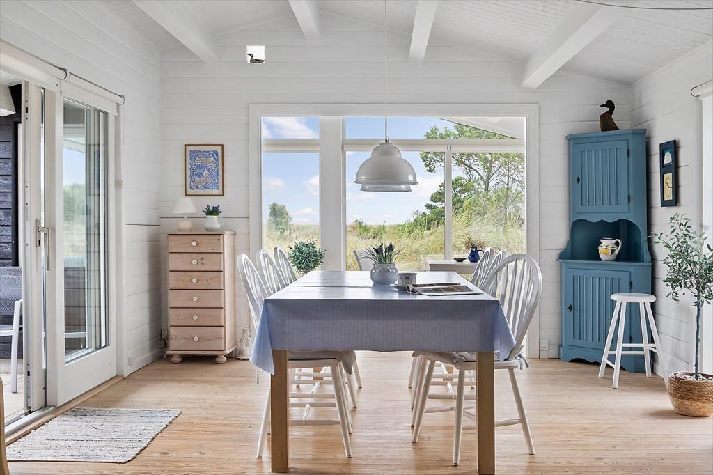 Inden døre møder du en dejlig, lys indretning, hvor ejerne har sat deres personlige præg og skabt en atmosfære, der indbyder til afslapning. Opholdsarealet er rummeligt og kombinerer stue og køkken i en åben planløsning, hvilket gør det let at være sammen om madlavning, spil eller hyggelige samtaler. Alligevel er der så god plads, at du nemt kan finde et stille hjørne til at fordybe dig i en bog eller tage en lille middagslur, selv hvis I er flere afsted sammen. Det store køkken er velegnet til fælles madlavning, og i stuen kan I samle jer til aftener med brætspil eller bare nyde varmen fra brændeovnen, når mørket falder på.