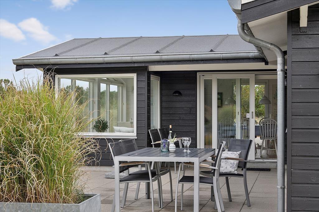 En af sommerhusets helt store kvaliteter er den skønne terrasse, som breder sig rundt om huset og byder på flere hyggelige kroge. Her kan du altid finde en plads i solen eller læ, alt efter vind og vejr. Det er oplagt at starte dagen med en kop kaffe på en af de små siddepladser og senere samle familien til aftensmad under åben himmel. Børnene kan lege frit på grunden, mens de voksne slapper af og nyder udsigten til Bolilmarks grønne og autentiske landskab. Terrassen giver dig med andre ord både privatliv og fællesskab – alt efter hvad humøret byder på.