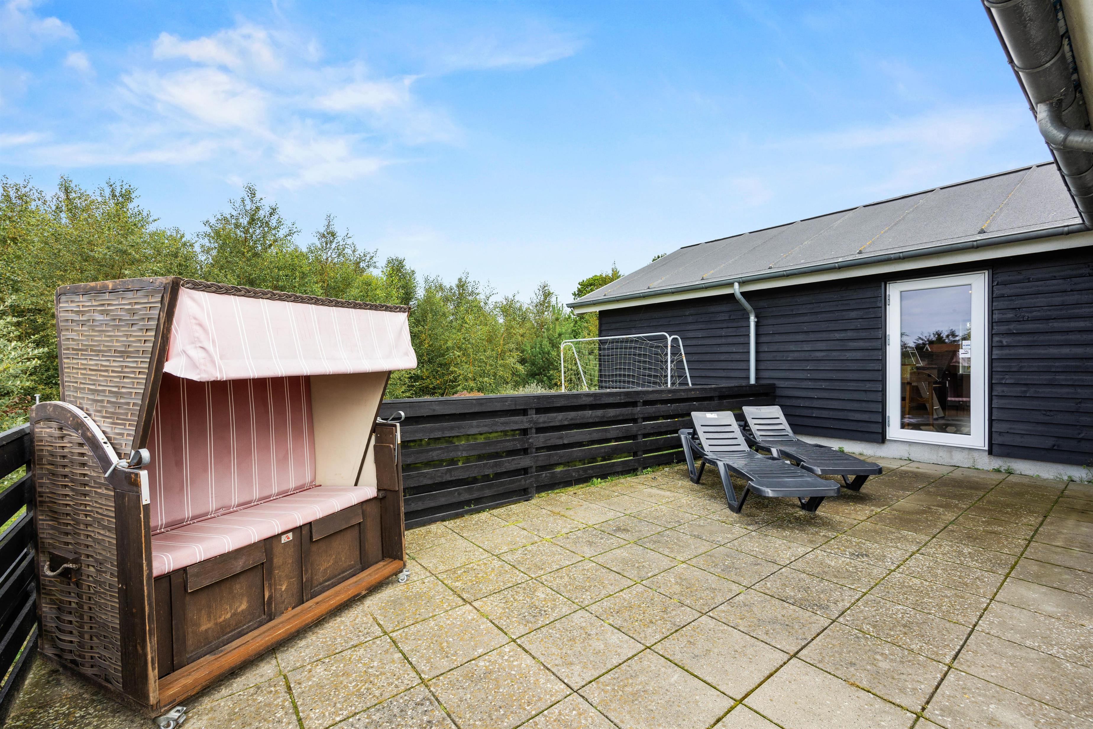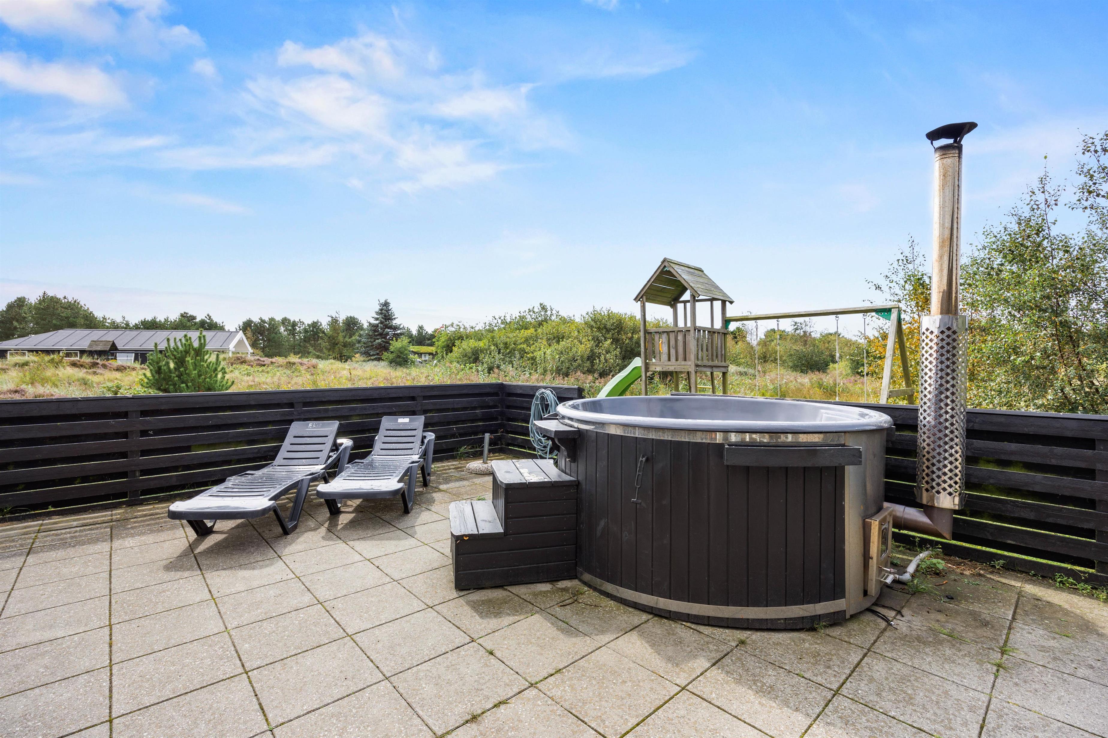 De lune sommerdage kan nydes på den store terrasse, der indbyder til udespisning med mad tilberedt på grillen. Sæt jer godt til rette i liggestolene og havemøblerne, mens børnene leger på den 2500 m2 naturgrund med gyngestativ og rutsjebane. Derudover er der også en udebruser, som i gerne må benytte jer af fra april til november.