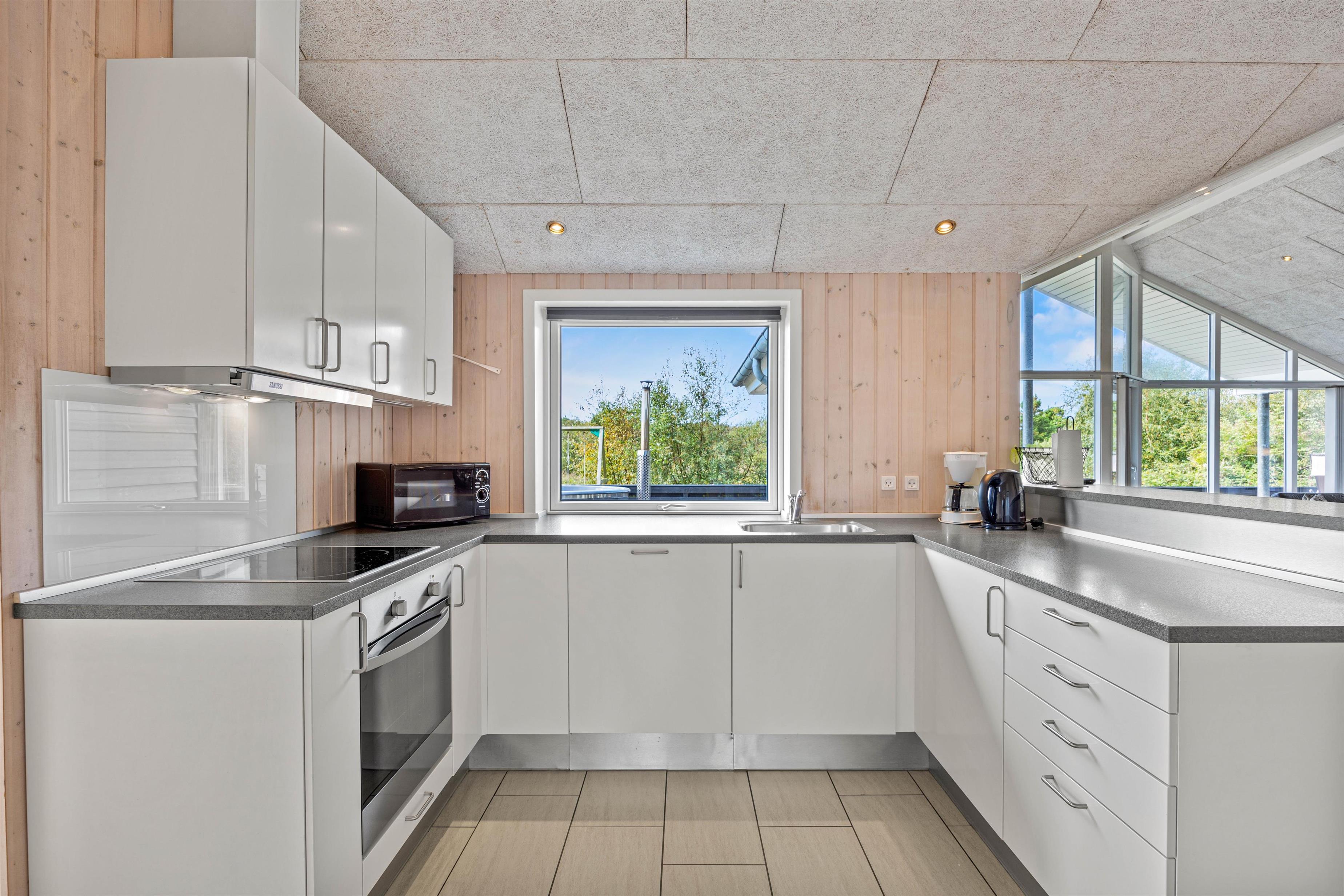 Sommerhusets 146 m2 byder derudover på et rummeligt køkkenalrum med loft til kip. Her kan familien samles til hyggelige stunder, mens brændeovnen knitrer i baggrunden. Chromecasten gør det muligt for jer at streame jeres yndlingsfilm til en hyggelig filmaften. Sommerhuset har 4 værelser, hvoraf 2 er med dobbeltsenge, og 2 er med enkeltsenge. De sidste sovepladser finder I på hemsene. - Alle senge er skiftet i 2025
