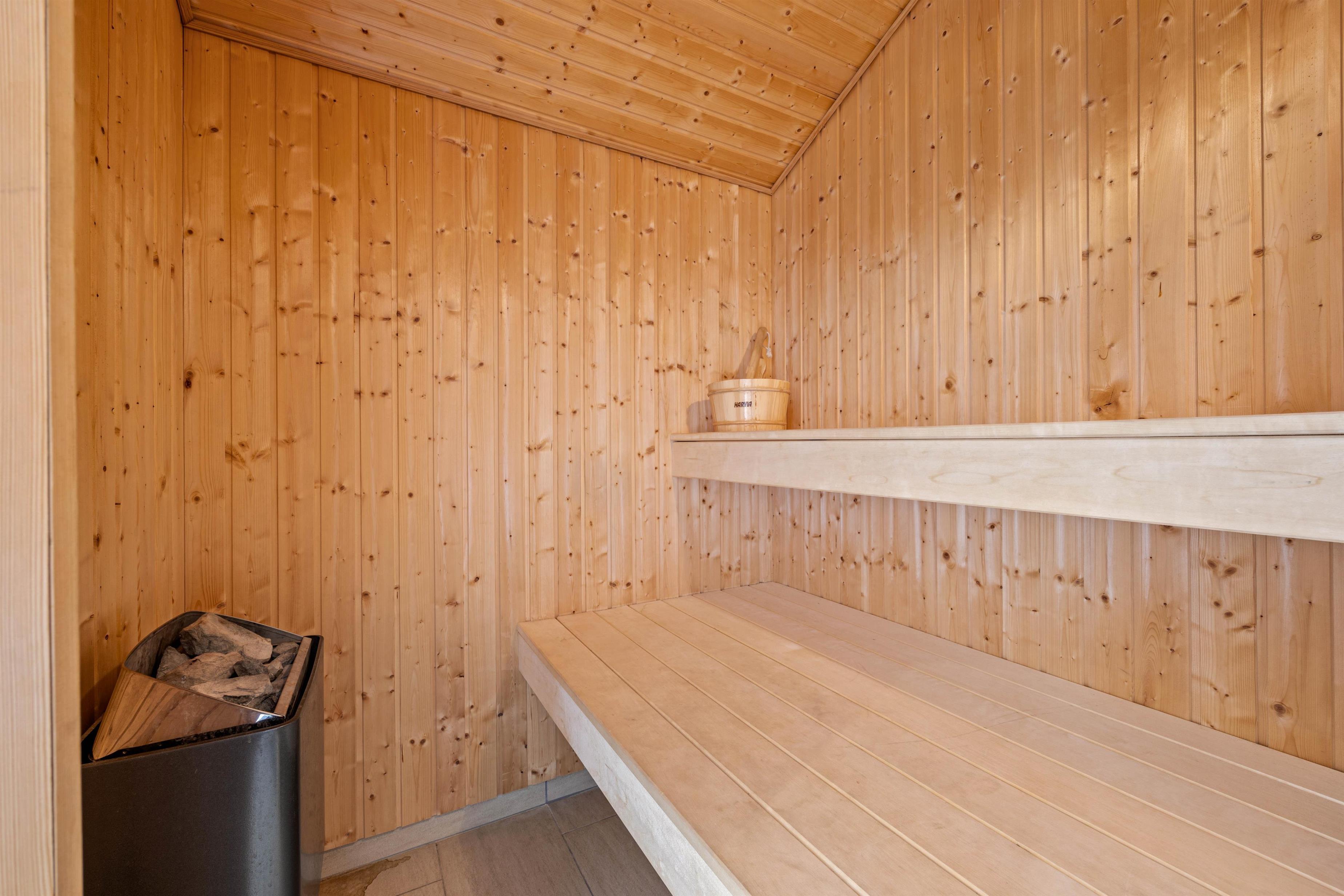 I feriehuset er der 2 badeværelser og i hele huset er der gulvvarme. På det store badeværelse finder I både spa og sauna til afslapning og velvære. Derudover er der vaskemaskine og tørretumbler.