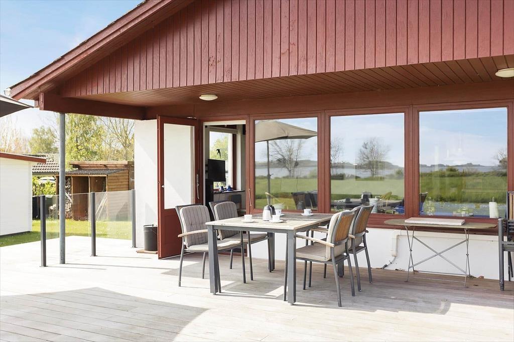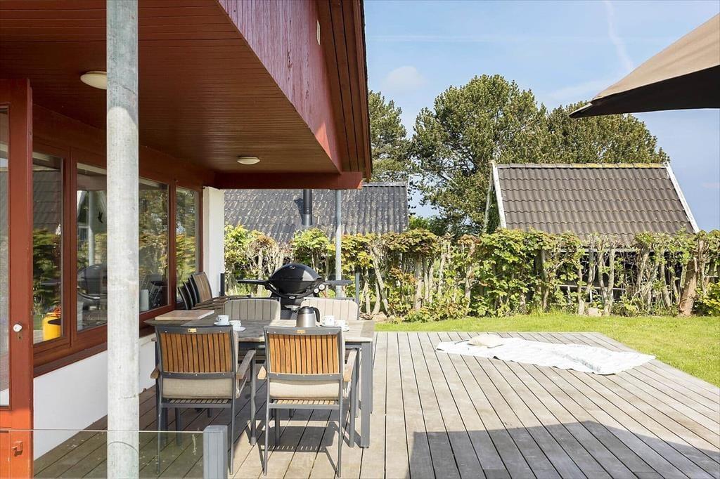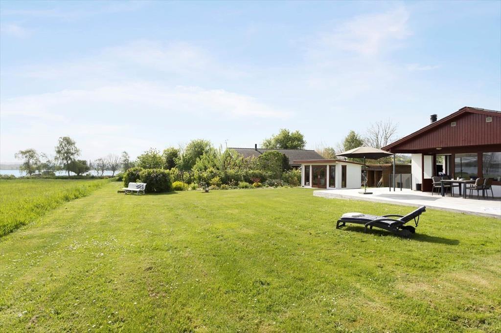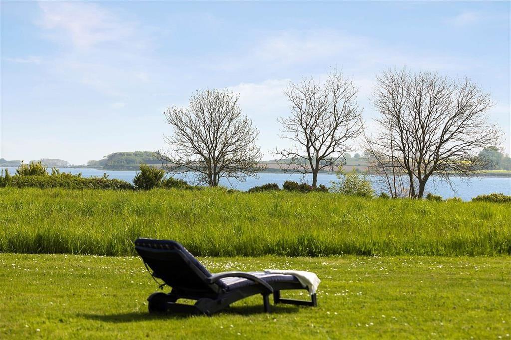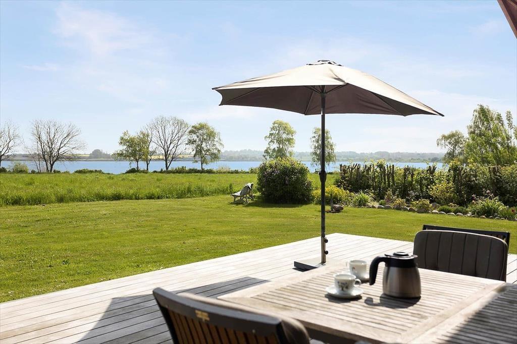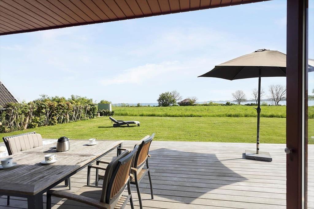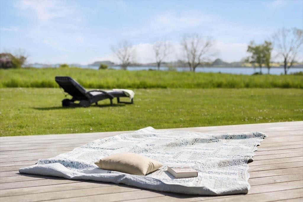 Fra stuen fører terrassedørene ud til en vidunderlig terrasse med en betagende udsigt over vandet. Her kan du nyde dine måltider i solen eller bare sidde og beundre solnedgangen i horisonten. Terrassen åbner op til en stor grøn græsplæne, perfekt til leg og afslapning, og med nem adgang til stranden er der rig mulighed for at udforske kystens skønhed.
