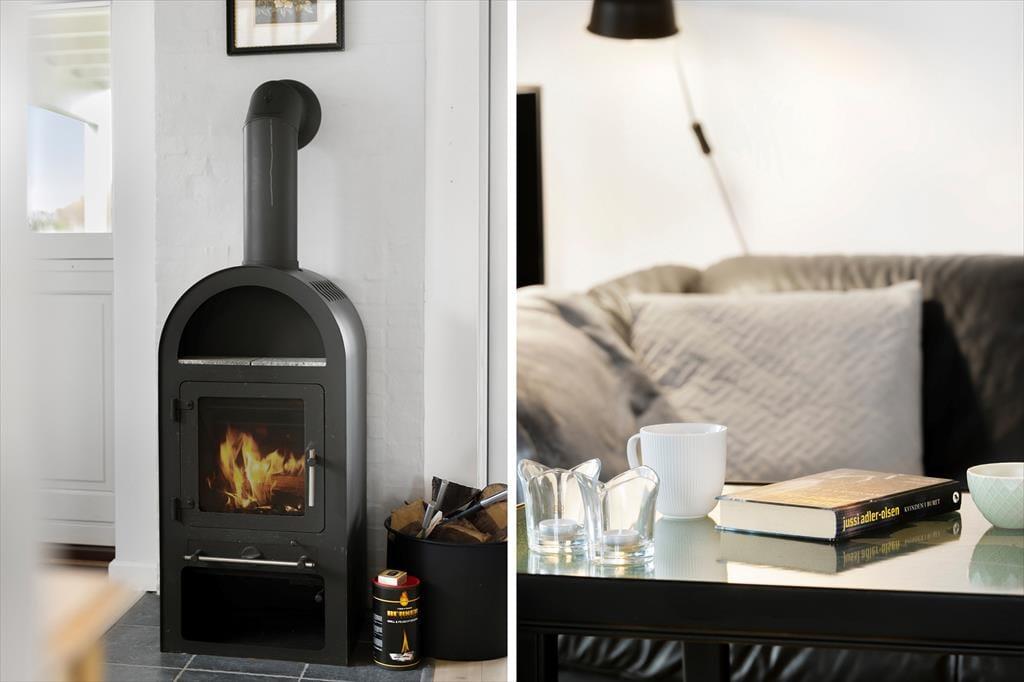 Inde i huset er der et stort og rummeligt opholdsrum med komfortable sofaer og en hyggelig brændeovn. Herfra kan du nyde den storslåede udsigt og slappe af med en god bog eller se en film på tv'et. Der er også et moderne køkken, hvor du kan tilberede lækre måltider med lokale råvarer og servere dem i den store spiseplads.