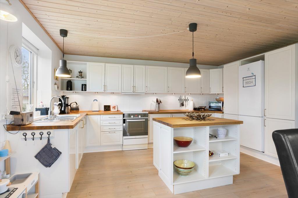 Sommerhuset er nyt og moderne og rummer alt det, du har brug for, for at få en behagelig og afslappende ferie. Det er lyst og luftigt og har store vinduer, der giver masser af naturligt lys ind.