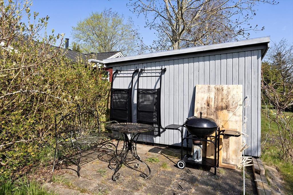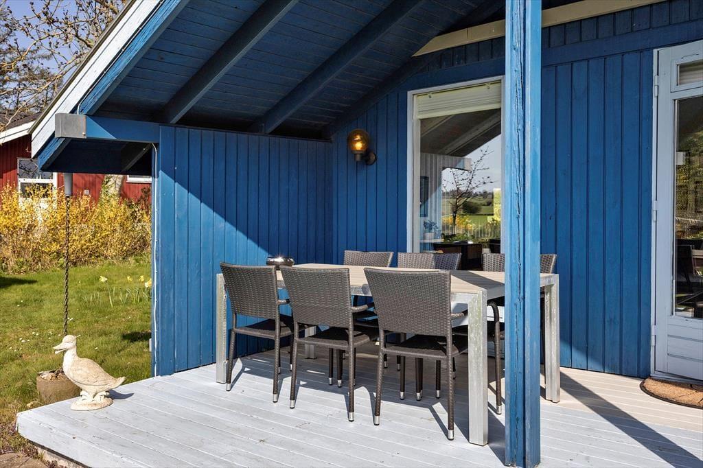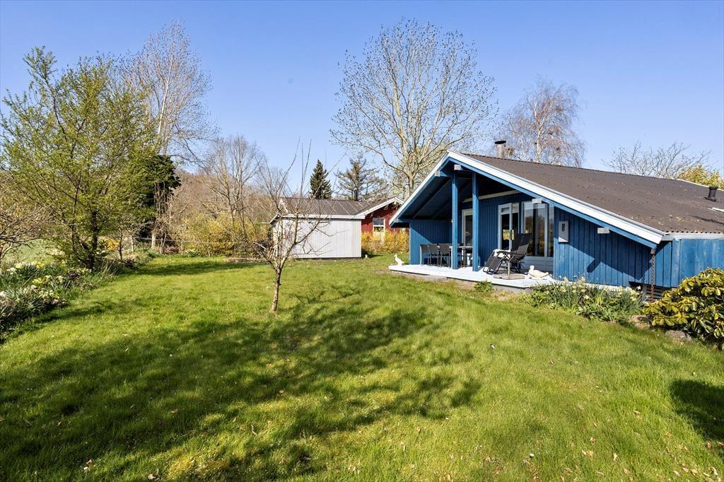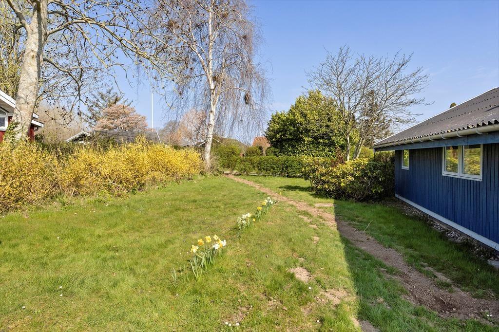 Haven omkring sommerhuset er en sand oase, perfekt til både afslapning og aktiviteter. Her kan du nyde lange sommeraftener på terrassen, som er ideel til både morgenkaffe og sene grillmiddage. Den hyggelige have inviterer til leg og afslapning, og er også et fantastisk sted at nyde de lange, lyse sommerdage. Med den korte afstand til stranden er det nemt at tage en dukkert i havet, og den fælles badebro giver mulighed for at fiske eller nyde den rolige stemning ved vandet. Her kan du virkelig mærke roen og naturens skønhed omkring dig.